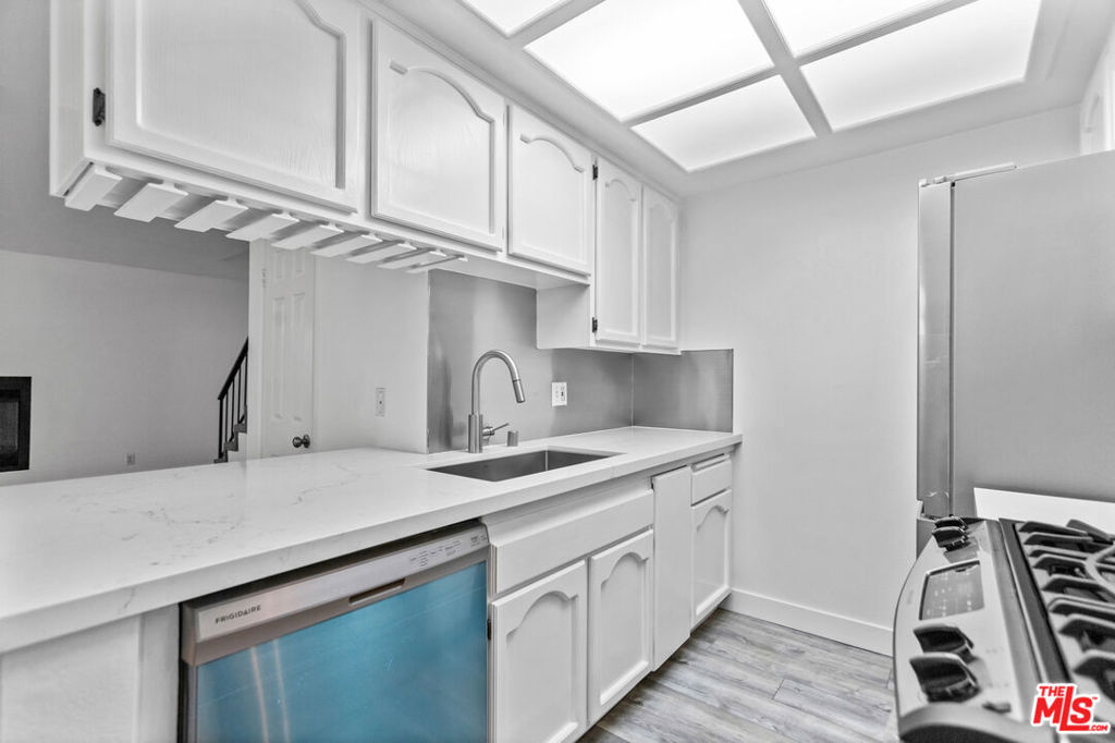 Recently renovated 2 bedroom, 3 bath townhome, with a corner rooftop patio looking at the hills. Renovations include stainless steel appliances, new counters, new tile, fixtures, sinks, hardwood floors and a breakfast bar. Full size washer and dryer in its own laundry room included inside the unit. Gated garage has a tandem parking spot with a lockable storage unit. Each bedroom has its own bath plus a powder room on the first floor. The unit has a working gas fireplace, central A/C and heat.
