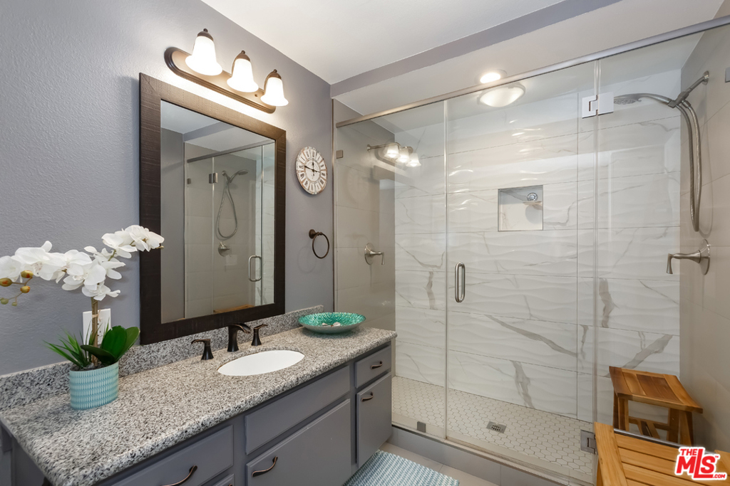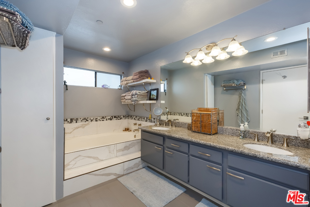 Situated in one of the most desirable neighborhoods of West Hollywood. This split level design 2 Bed + 2 Bath condo creates a unique feeling of space throughout that boasts over 1600 square feet. The entry level includes your guest bedroom, a spacious bathroom that is complete with a walk-in shower, and a full size laundry closet. Step downstairs to enter a private primary suite with a large walk-in closet and en-suite bathroom which includes a walk-in shower and spa tub that's ideal for relaxing. Upstairs from the entry level, entertaining is seamless with an open living/dining area, fireplace, and an open loft steps above that can be used as a home office space. The loft includes a private balcony with views of the hills! The kitchen is complete with stainless steel appliances with an open pass through to the dining area. The unit includes upgraded dual zone A/C, 2 assigned side by side parking spaces underground, and ample storage space. Minutes away from trendy restaurants, bars, shops, entertainment along Santa Monica Blvd and the Sunset Strip!