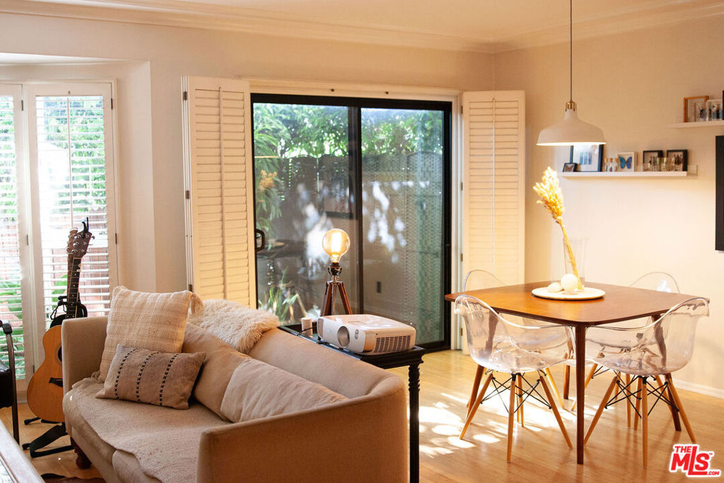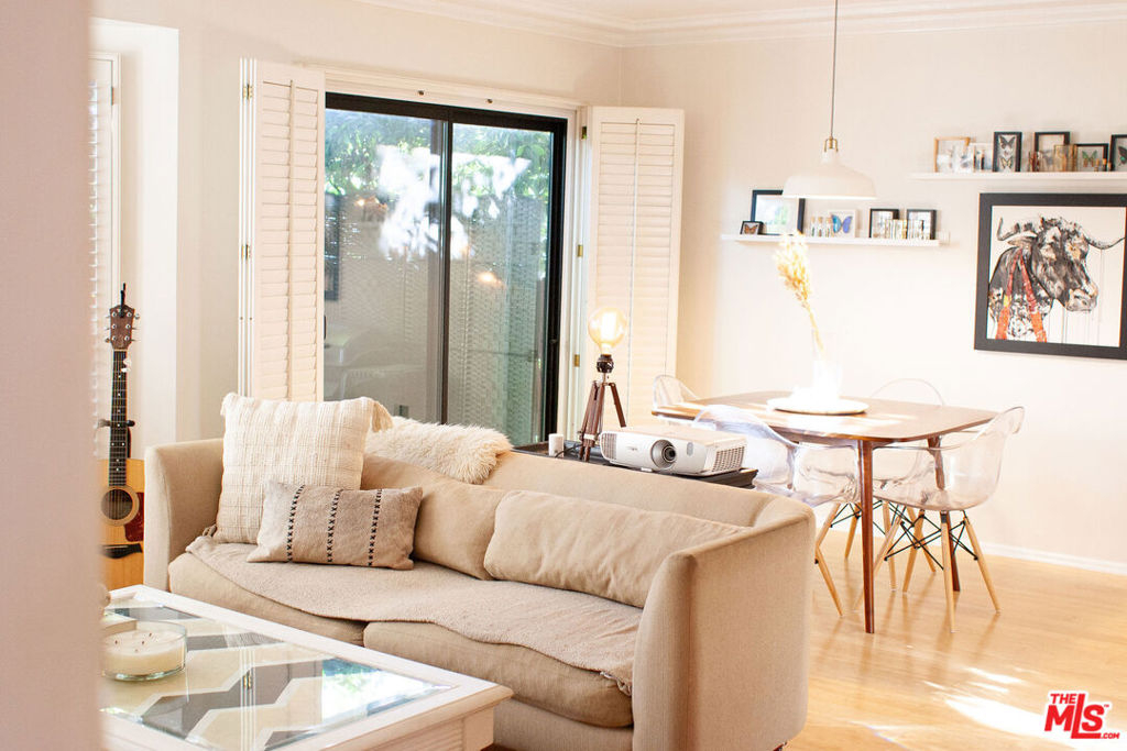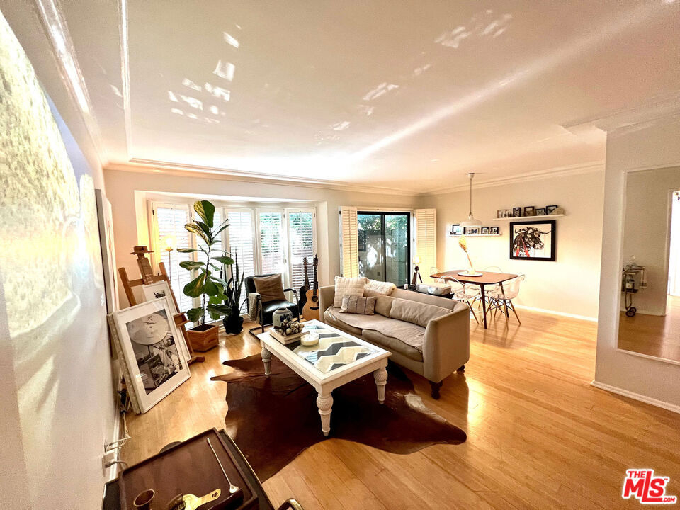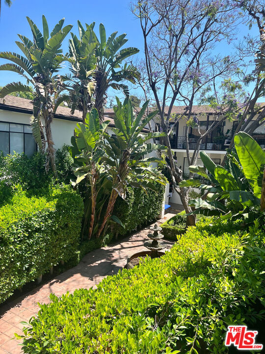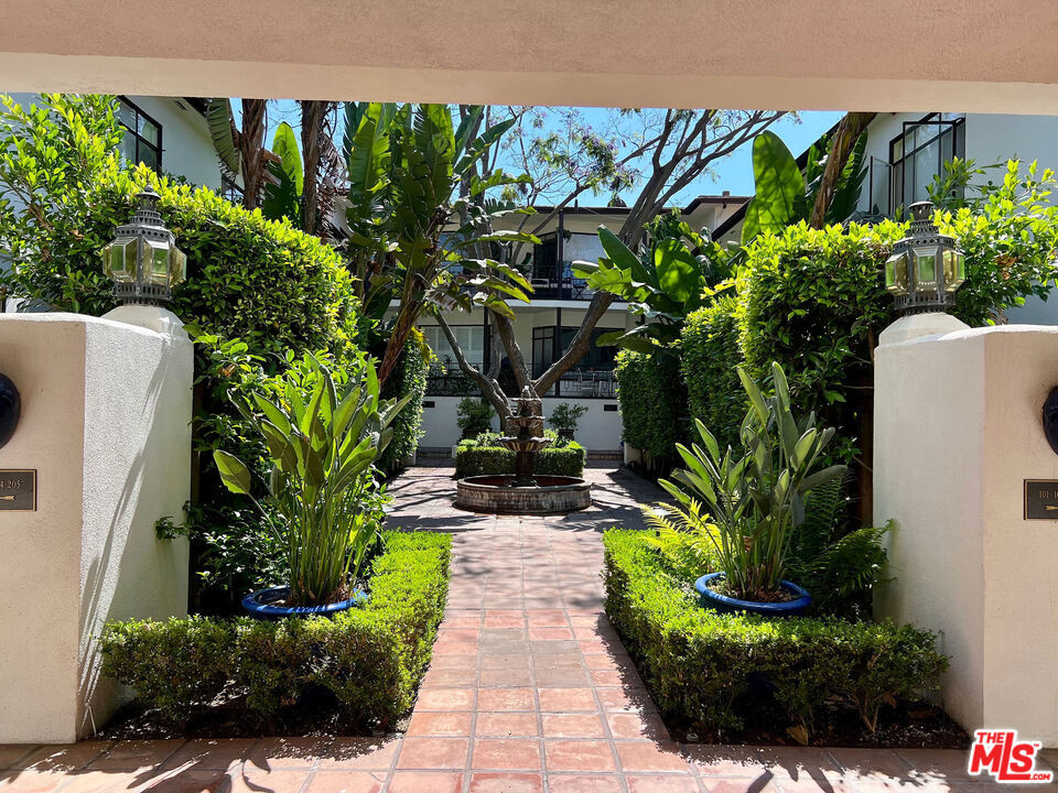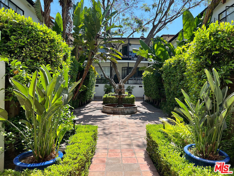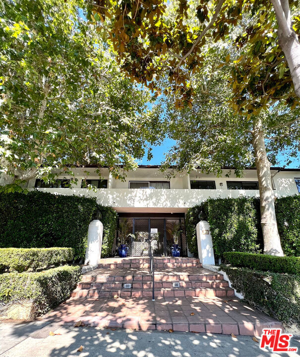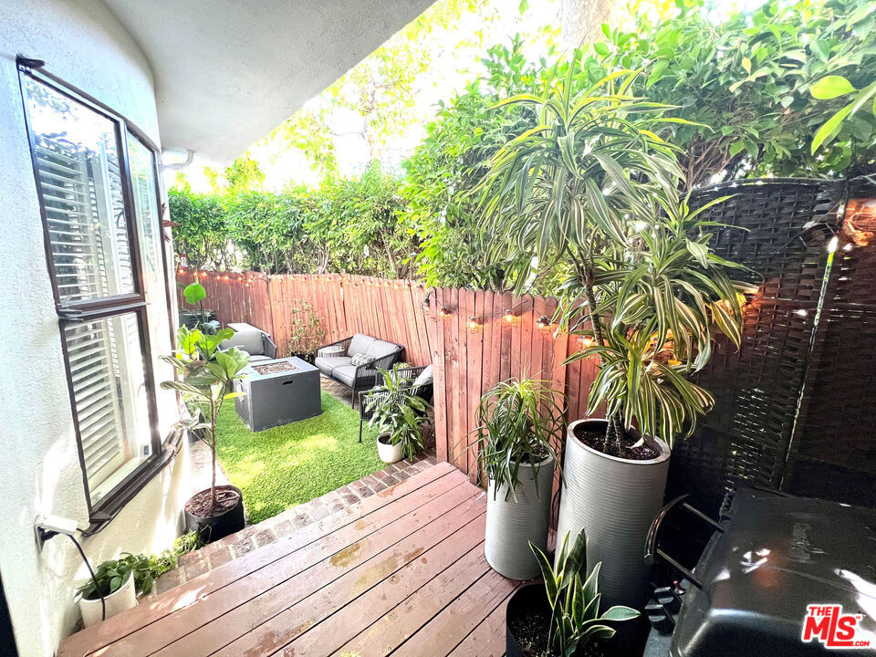 Welcome to the elegant 1318 N Crescent Heights. This quiet and inviting 2-bedroom, 2-bathroom residence is ideal for both entertaining and embracing an indoor/outdoor lifestyle. Nestled within a gated complex, this southwest-facing corner unit is uniquely positioned and boasts expansive private outdoor space extending the length of the home. Upon entry, you are greeted by well-maintained hardwood floors that extend throughout the property, complemented by large, light filled windows along the entire western wall that feature custom wood window shutters. The living and dining areas are designed for seamless flow, allowing for easy movement between the living room, dining room, kitchen, and outdoor patio. The oversized patio is completely private with mature trees surrounding it to create your own private oasis. Perfect for turning on the firepit and enjoying al fresco dining or having a BBQ party. The charming kitchen features new stainless steel refrigerator, microwave, and stove, alongside original built-ins in every corner. On the opposite side of the home, you'll find two spacious bedrooms with ample closet space and even wiring for a concealed TV. Both bathrooms exude the style of a chic boutique hotel, showcasing colorful and pristine original tiling throughout. Additional features include a new HVAC system (2020) with cold air conditioning and a Nest thermostat, an in-unit washer/dryer, extra storage in the parking area, a building wide 24/7 closed-circuit security system and a a building that was freshly painted by the HOA. Located just minutes from the vibrant offerings of West Hollywood - this one is sure not to last.
