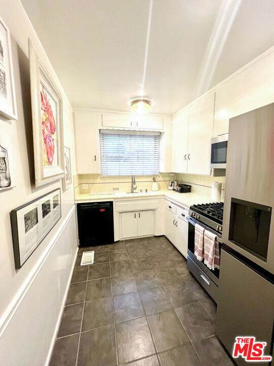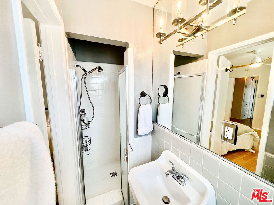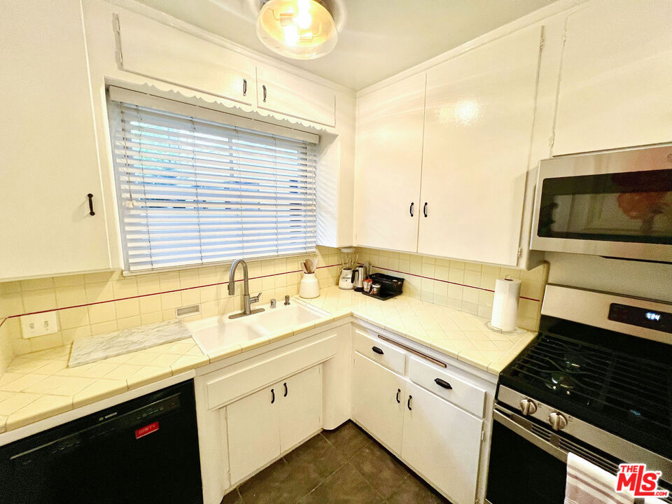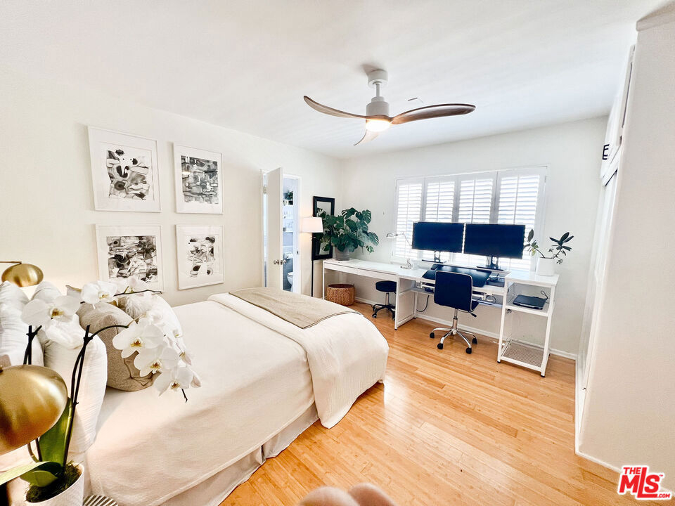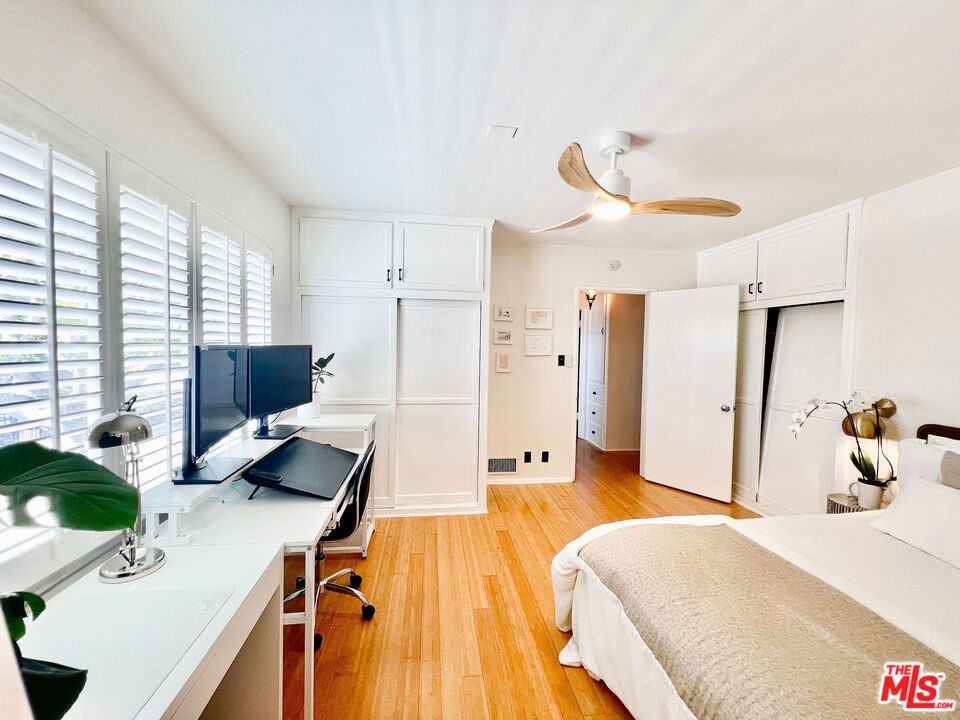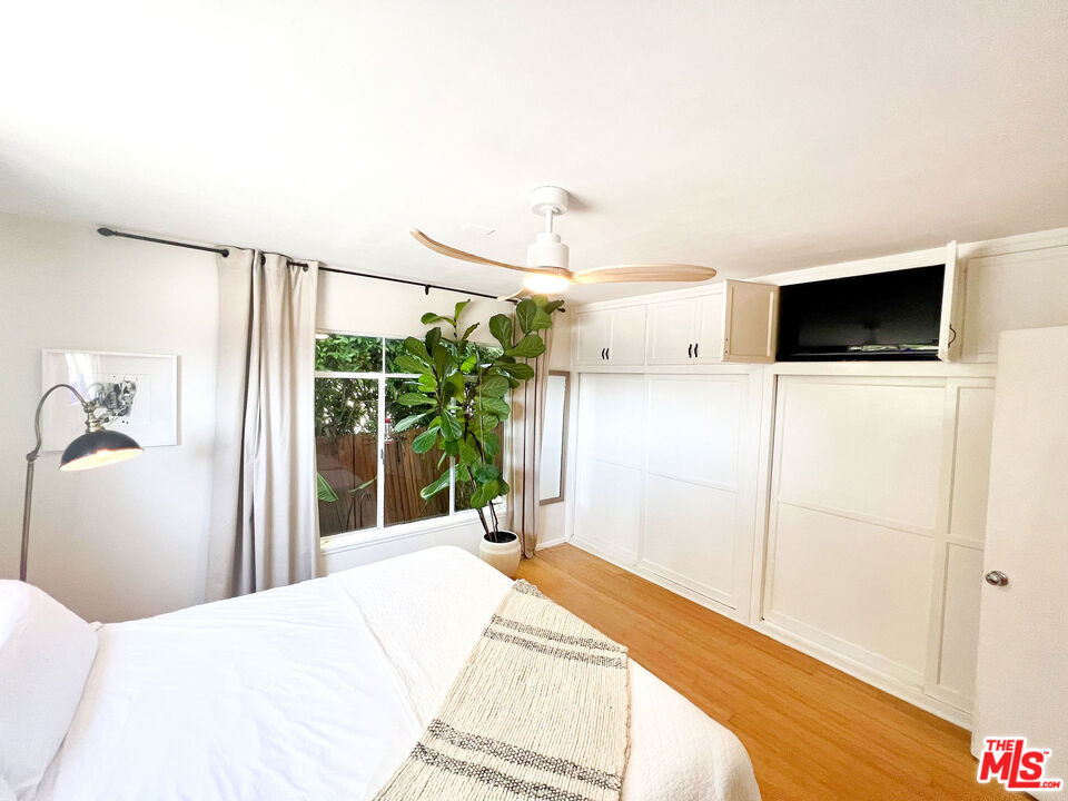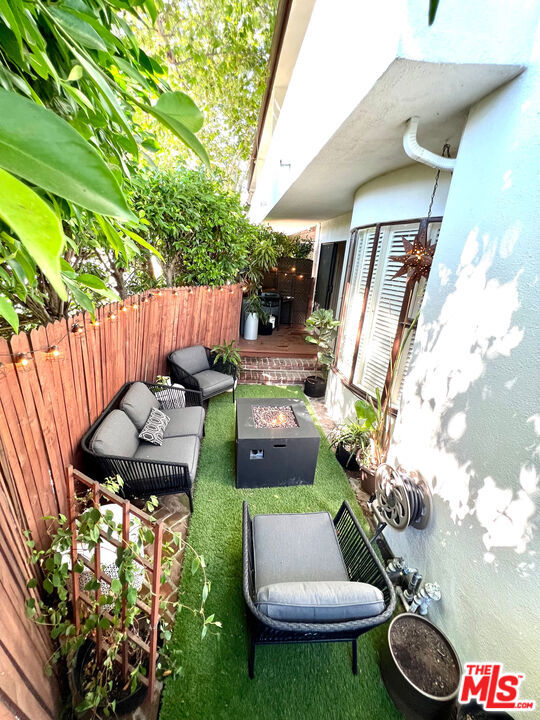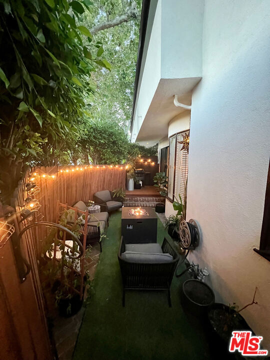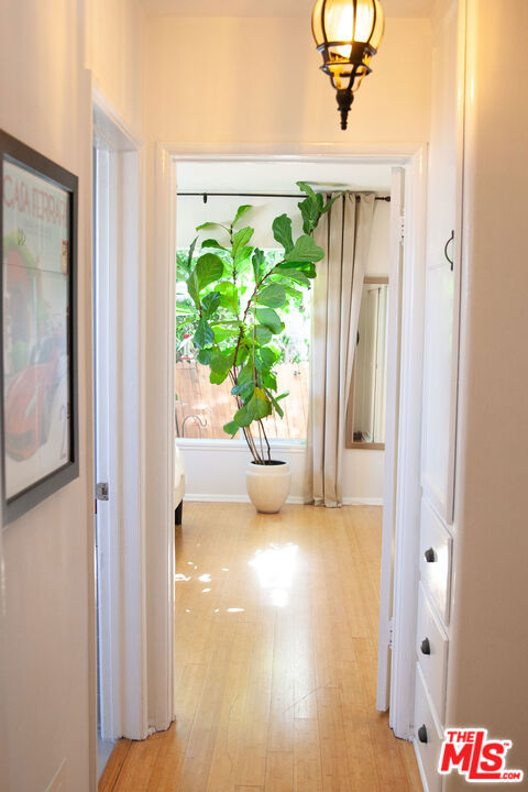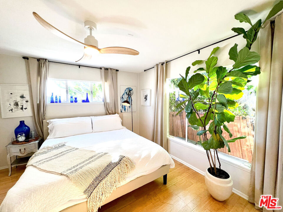 Welcome to the elegant 1318 N Crescent Heights. This quiet and inviting 2-bedroom, 2-bathroom residence is ideal for both entertaining and embracing an indoor/outdoor lifestyle. Nestled within a gated complex, this southwest-facing corner unit is uniquely positioned and boasts expansive private outdoor space extending the length of the home. Upon entry, you are greeted by well-maintained hardwood floors that extend throughout the property, complemented by large, light filled windows along the entire western wall that feature custom wood window shutters. The living and dining areas are designed for seamless flow, allowing for easy movement between the living room, dining room, kitchen, and outdoor patio. The oversized patio is completely private with mature trees surrounding it to create your own private oasis. Perfect for turning on the firepit and enjoying al fresco dining or having a BBQ party. The charming kitchen features new stainless steel refrigerator, microwave, and stove, alongside original built-ins in every corner. On the opposite side of the home, you'll find two spacious bedrooms with ample closet space and even wiring for a concealed TV. Both bathrooms exude the style of a chic boutique hotel, showcasing colorful and pristine original tiling throughout. Additional features include a new HVAC system (2020) with cold air conditioning and a Nest thermostat, an in-unit washer/dryer, extra storage in the parking area, a building wide 24/7 closed-circuit security system and a a building that was freshly painted by the HOA. Located just minutes from the vibrant offerings of West Hollywood - this one is sure not to last.