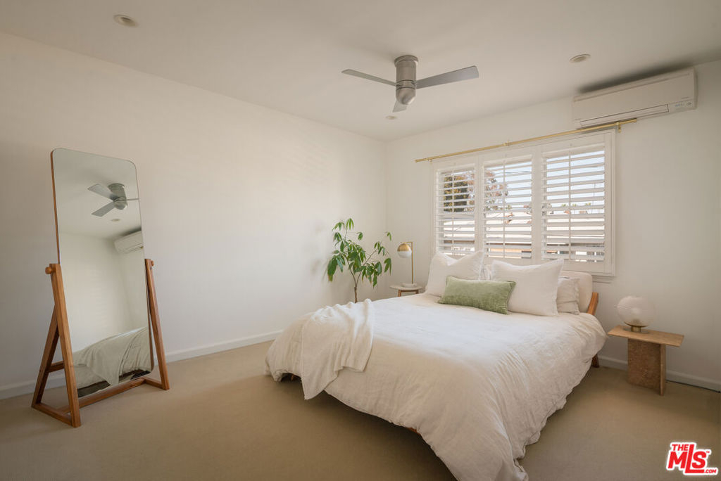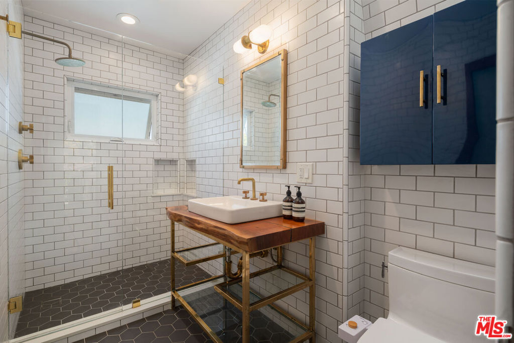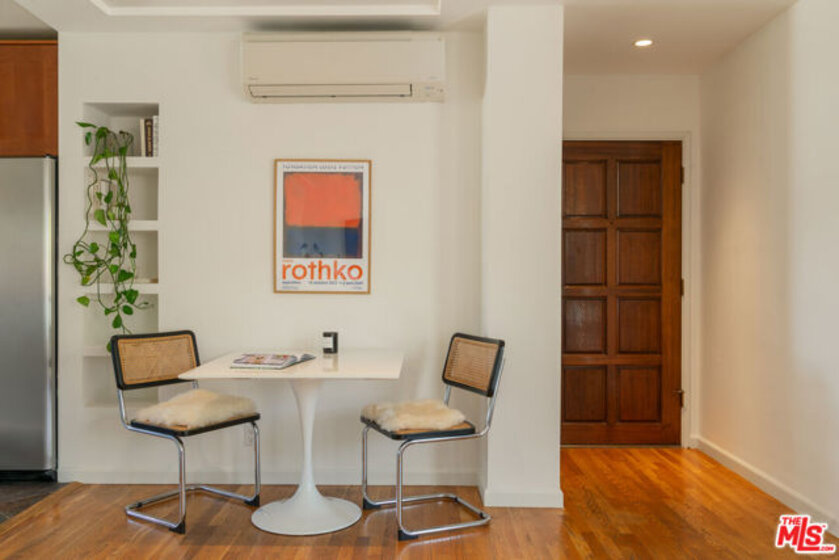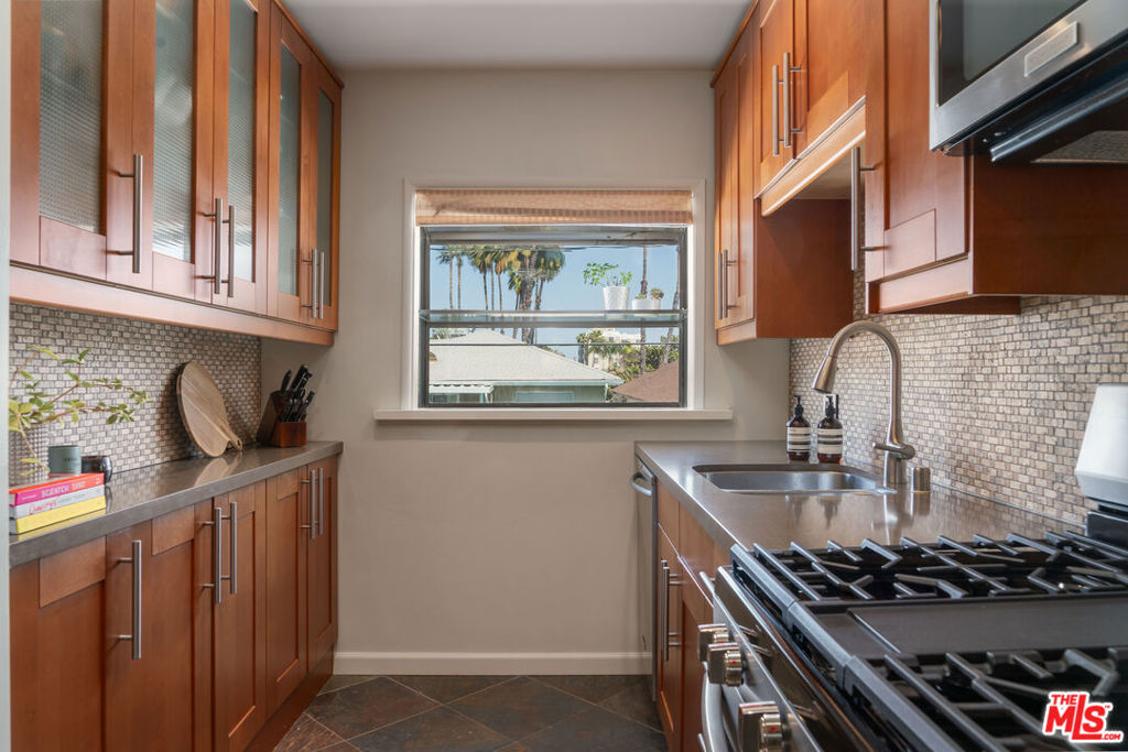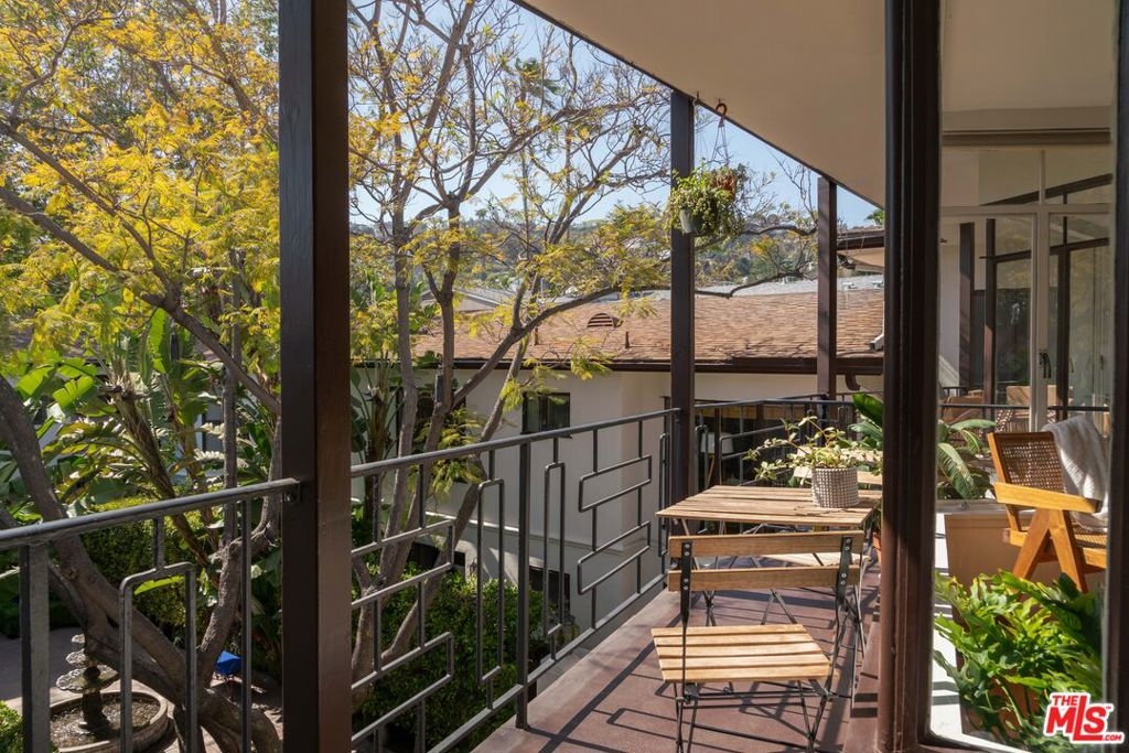 Experience classic charm in this pristine top-floor vintage condo, located privately in the back of a beautifully maintained Mediterranean style building in the heart of West Hollywood. Bathed in natural light and shielded from any street noise, the unit features hardwood floors, a private west-facing balcony with sweeping views of the West Hollywood Hills and in-unit laundry. The spacious, remodeled kitchen is outfitted with stainless steel appliances and a east-facing window that brings in even more light, while the stunningly renovated bathroom looks like it was pulled straight from the pages of Dwell magazine. Additional highlights include sleek ductless mini-split AC units, a skylight in the bathroom for additional light and one covered parking space. Set within a charming, gated 21-unit complex, the building offers a lush, landscaped courtyard with 3 fountains. Located just seconds from Trader Joe's, Whole Foods, Crunch Gym, Starbucks, Landmark Theaters Sunset, and all the best that West Hollywood and the Sunset Strip have to offer.