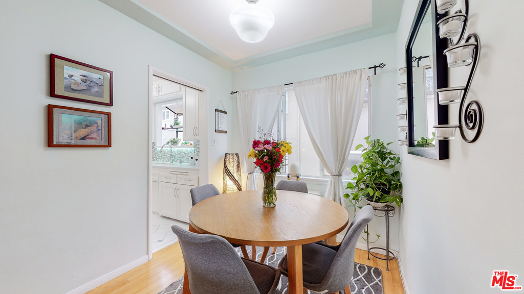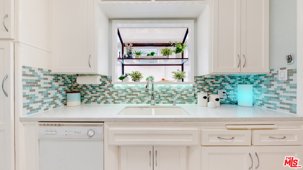 Classic Mid Century intimate 21 unit building. BEST PRICED 2 BEDROOM UNIT IN WEST HOLLYWOOD. Top Floor, with large bay window overlooking the lush courtyard. Bright sunlit unit. Updated kitchen with quartz countertops and aqua blue glass backsplash. All appliances included. Updated white sub way tiled bathroom with separate tub and glass enclosed shower. Hardwood floors throughout. Dog friendly community. Minutes to Sunset Strip, Trader Joes, Whole Foods, Crunch and Theaters. Gated carport parking for added security. Building has intercom secured common area. Low HOA fee includes EQ Coverage for the building. HOA ALLOWS IN UNIT LAUNDRY WITH BOARD APPROVAL.