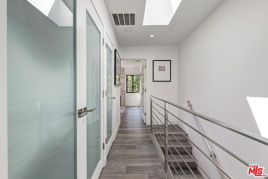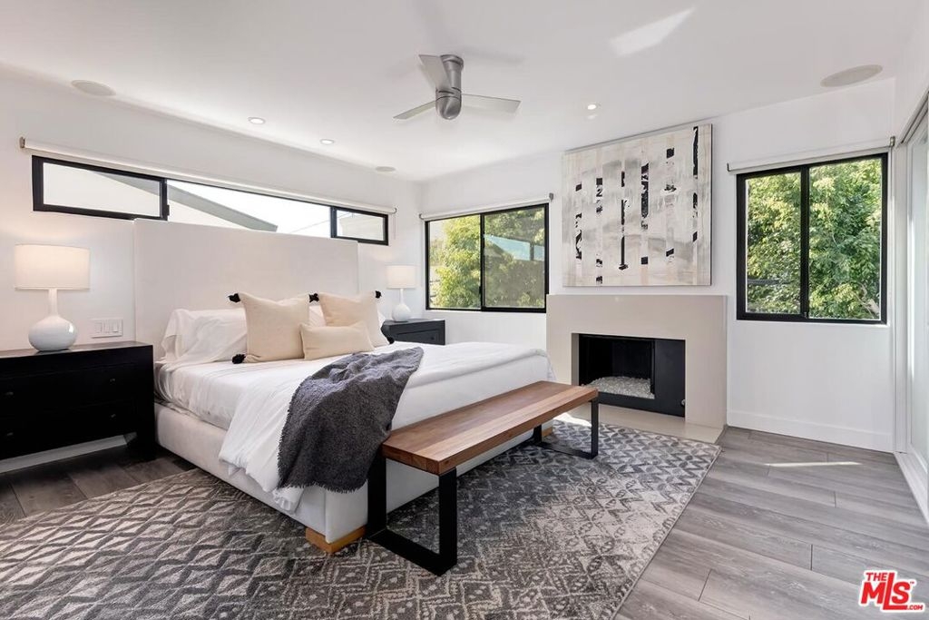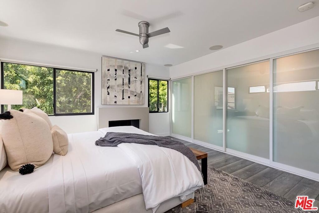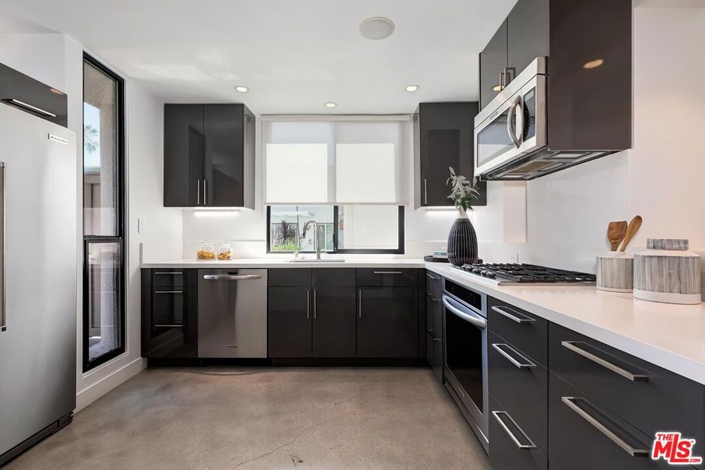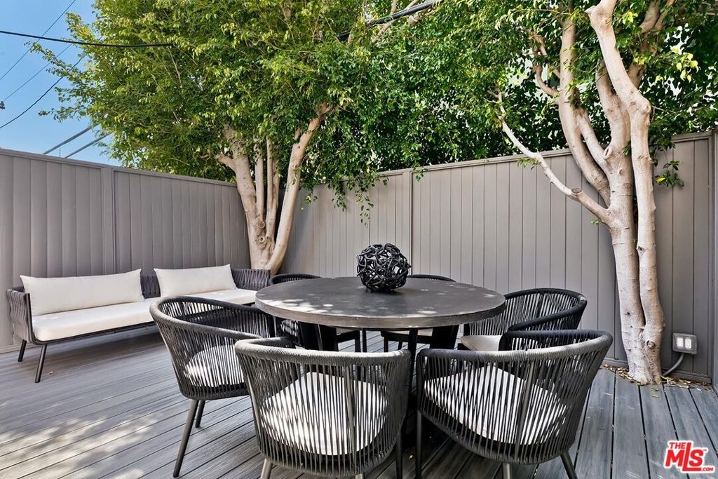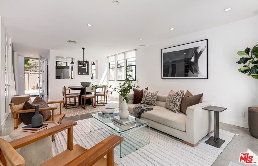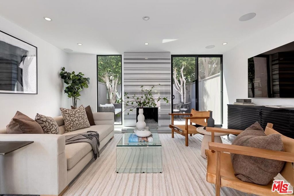Stunning Architectural Townhome in Highly Sought-After Boutique Building. End unit with approx. 500 sq ft of private outdoor space as well as a private 2 car garage make this a rare find! Gated courtyard entry with expansive patio welcomes you to this spacious home filled with natural light. The unit has been highly upgraded beyond one's expectations including concrete flooring, recessed lighting, CAT 6 network cabling and AV wiring throughout, full size washer & dryer, electric skylight and upgraded Milgard windows and doors. Living room and dining area open to second large patio with TREX decking. The open chef's kitchen has stainless steel appliances, custom cabinetry and quartz countertops. Primary suite with fireplace, custom built in closets, and updated bathroom with dual sinks. Only 10 townhomes in this special complex proximate to the best of West Hollywood.