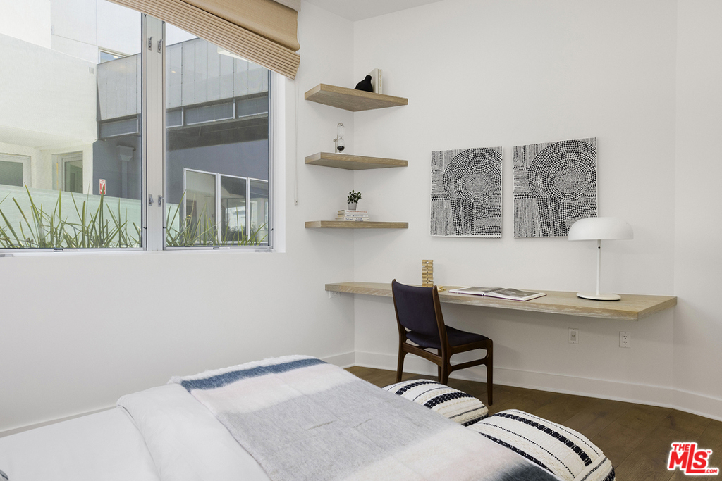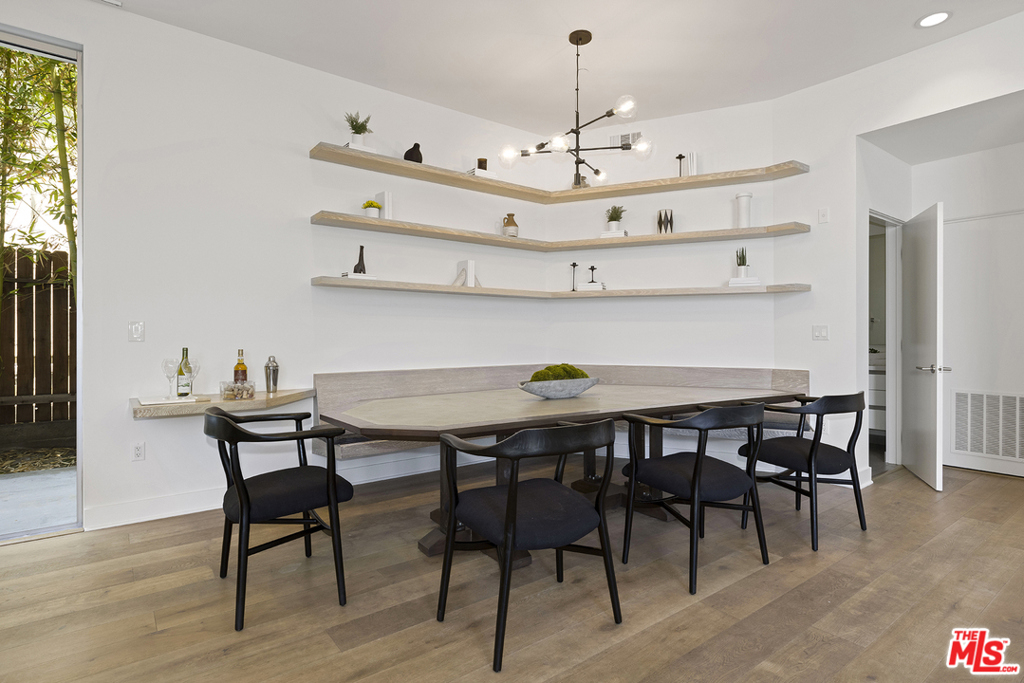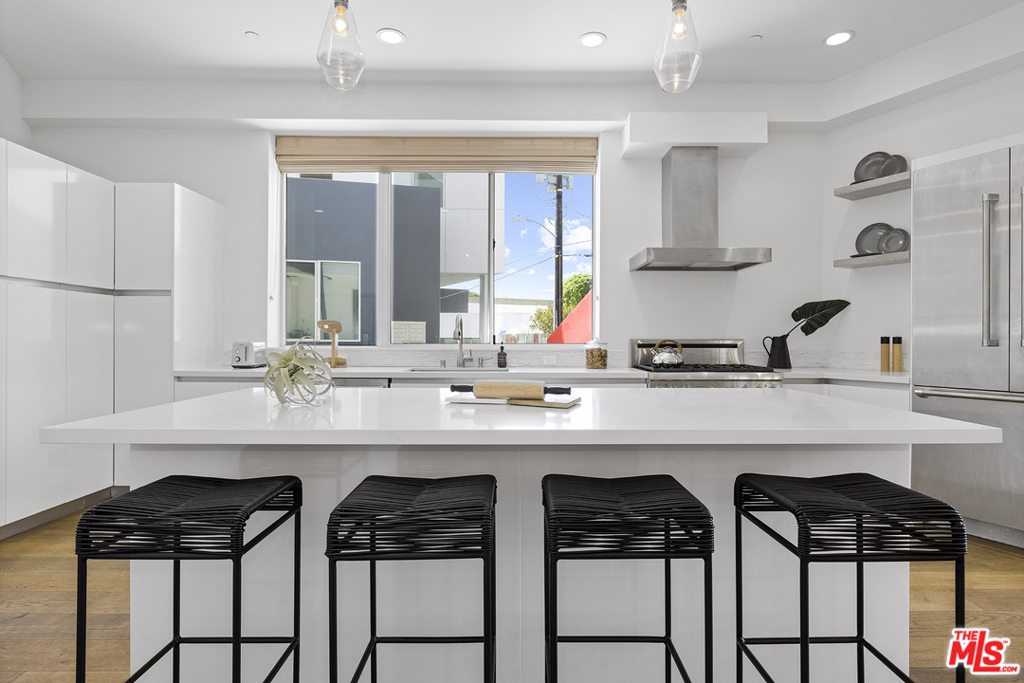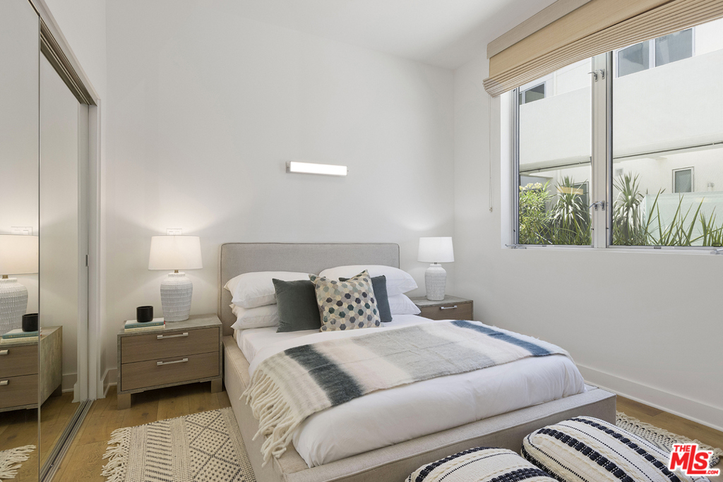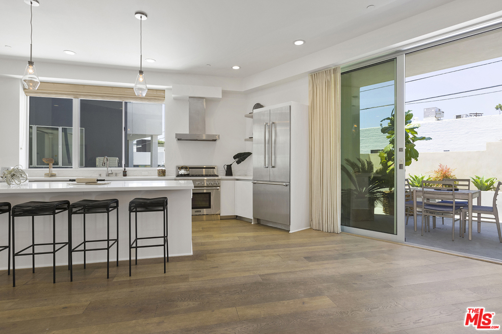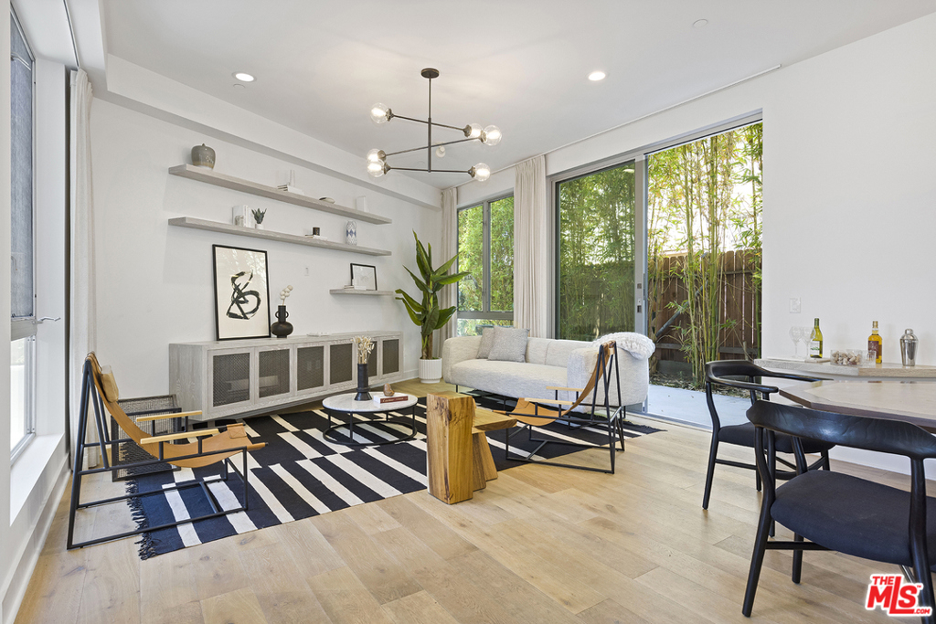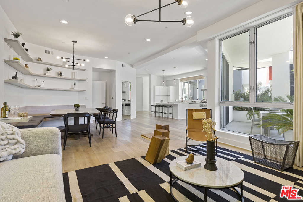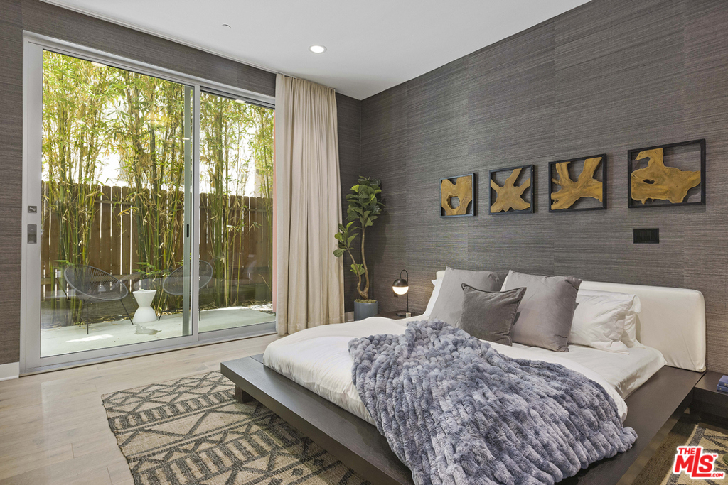 This single level modern residence is perfectly situated in an iconic destination adjacent to Melrose Place's cafes and boutiques, while maintaining privacy and tranquility. The sophisticated interior features wood floors throughout, designer built-ins, custom lighting, and timeless wallpaper. A gourmet kitchen is well equipped with top of the line appliances, ample storage, and center island. Outdoor space is inclusive of a wraparound patio, surrounded by lush landscaping + bamboo, creating a zen atmosphere that can be felt both inside and outside the home. Amenities include: laundry in unit, secure entry + cameras, dedicated Tesla charging, side by side parking, guest parking, and storage. Indulge in the ultimate Los Angeles lifestyle, near boutique shopping, dining, and entertainment.