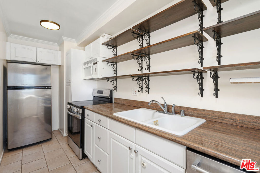 Located in the heart of West Hollywood on a quiet, tree lined street between The Beverly Center, The Grove and 3rd Street, you'll enjoy easy walks to the famed Melrose Place, shops, grocery store, restaurants and much more. This top floor corner condo is away from the street with a lovely balcony facing west and ideal to watch the sunset. Two bedrooms, two bathrooms corner unit provides great natural light (south/west exposure) and plenty of space, plus built in cabinets and multiple closet space. New central heat/air three zone. Enjoy a private balcony looking up to the hills, laundry in unit and onsite community laundry room, two tandem subterranean parking spots with gate and security cameras, plus extra storage. New floors, upgraded bathrooms and hallways have been recently remodeled. A bright quiet penthouse in the heart of West Hollywood.