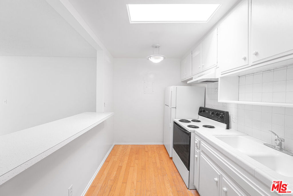 Spacious Studio in the ever-popular Tri-West Weho! Close to all of the Melrose Design Districts incredible shops and restaurants on a charming, tree-lined street! Back unit on the top floor overlooking the pool. Clean and bright with skylights in the bathroom and kitchen. Move-in or remodel and make it your own! Quiet, well maintained building. Low HOA dues. Heated pool surrounded by sun deck and lush greenery. A rare opportunity in a desirable area that won't last! Probate with NO court confirmation required!