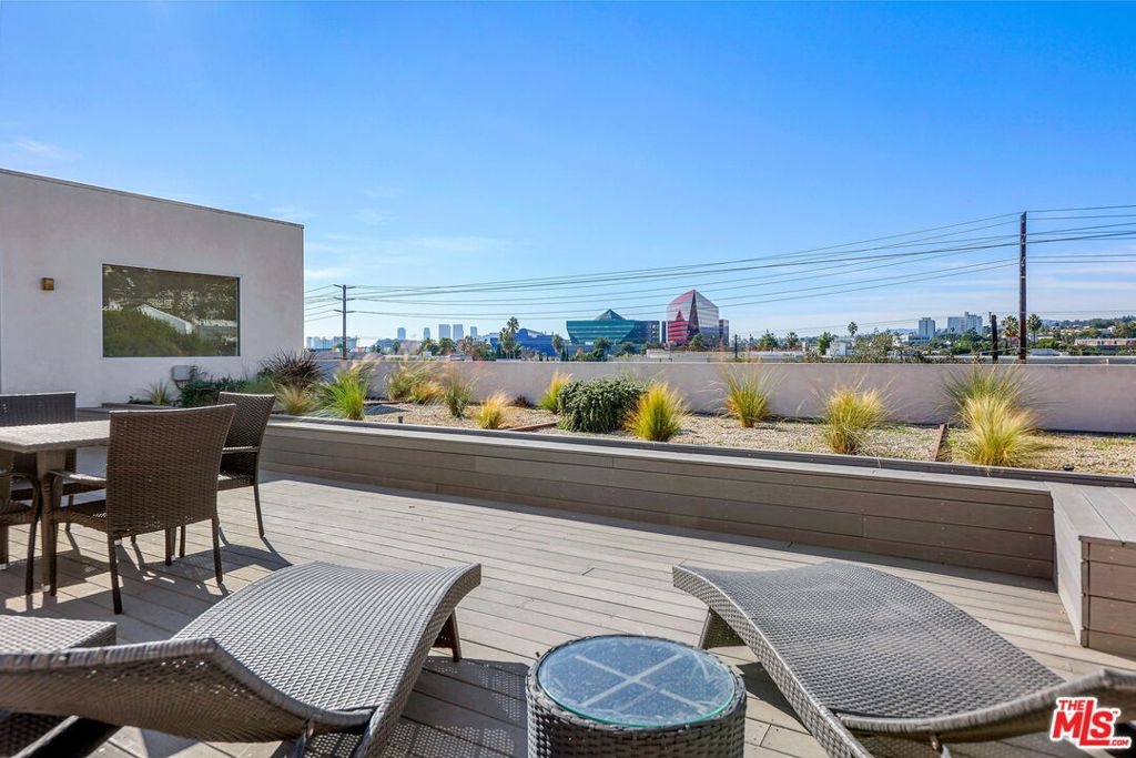 South facing penthouse in a desirable modern building. PH# 403 is situated on the top floor of a boutique building of only 18 condo's. The top floor features only 4 condo's and #403 is perfectly located on the South West corner. Large Master bedroom with bathroom and double shower head. 2nd good size bedroom with en-suite and bath tub. The condo has had updates in 2020 throughout. New closets, carpet, paint, and new wood floors in the living area. Modern gourmet kitchen w granite bench and stainless steel appliances. Internal laundry with new washing machine and dryer. Good size living/dining area with additional powder room. Small private balcony. The condo is located next to the building community room and rooftop deck which is ideal for sun lounging and entertaining. Nice South views from all rooms and even better Hills and Sunset views from the deck. There are no common walls, the ceilings are high, the HOA's are low. There is gated secure double tandem parking underneath. There are 4 guest parking spots in the alley and plenty street parking available. The location is a perfect West Hollywood location - walk to Alfreds Coffee and Farmers markets on Melrose Pl. La Cienega restaurants Koi and Nobu and Santa Monica Blvd are a short stroll