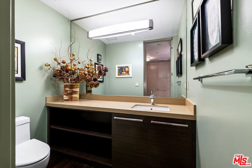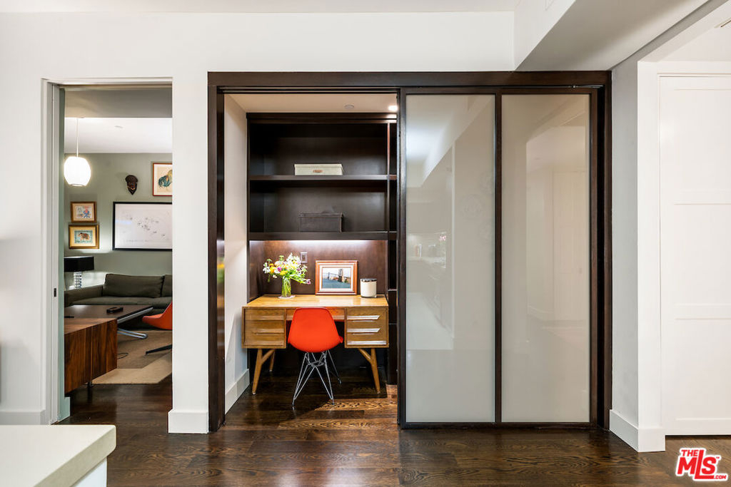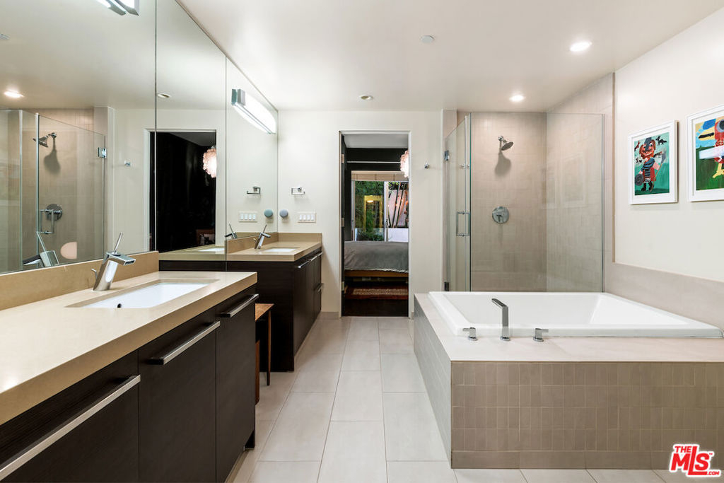 Welcome to 855 N. Croft Avenue, designed by renowned architect Zoltan Pali, FAIA. This rare, rear corner unit boasts its own private entrance and expansive patio. The formal entry with paneled foyer coat closet powder room, welcomes you into the open floor plan with solid oak flooring and 10-foot ceilings throughout. The chef's kitchen features custom Italian cabinetry and stainless steel appliances, including a Bertazzoni stove. The primary suite has direct patio access and a luxurious spa-like bathroom, which includes stone counters, dual sinks, soaking tub, separate glass shower and a large walk-in closet. The junior primary suite also has patio access and a custom walk-in closet. An office alcove boasts custom shelving and built-ins. Additional features include: recessed lighting, Farrow and Ball paint, and a smart thermostat and lighting. Enjoy being close to some of the best shops and restaurants in LA, along with the Sunday Melrose Place Farmer's Market. This is California living at it's best and would make a wonderful place to call home!
