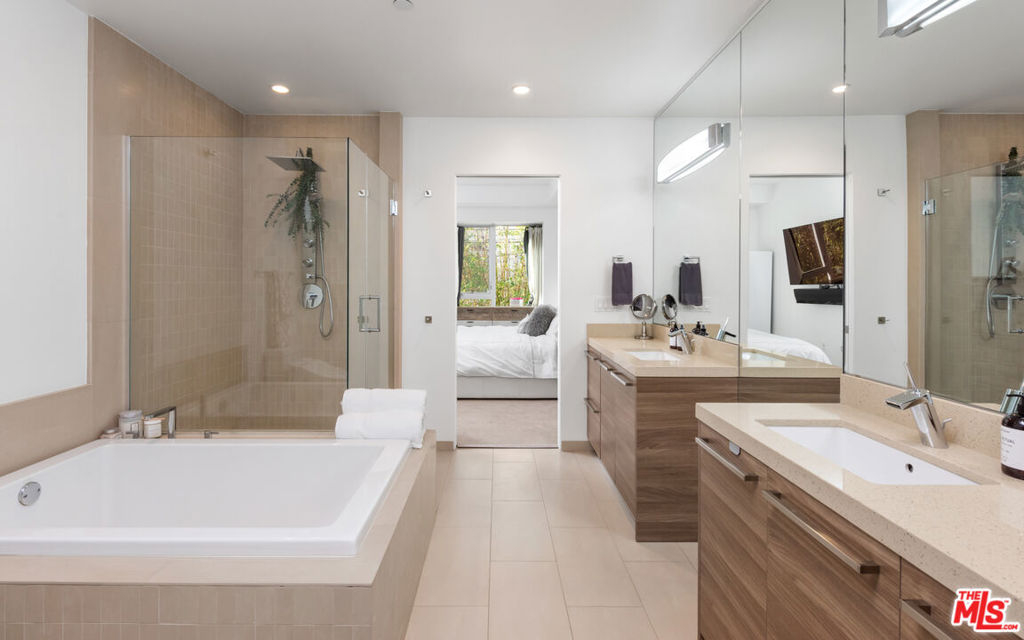Welcome to 855 N Croft-- a chic, modern building primely located in the West Hollywood area designed by Zoltan Pali of SPF architects. This extremely private, sun-soaked 2nd floor unit has been recently updated including brand new light fixtures, in-unit Miele washer and dryer, and new LG fridge. With lux hardwood floors, 10FT ceilings, 2 dual suites with ensuite baths, large powder bath, Italian cabinetry, and a modern kitchen featuring a sleek Bertazzoni cooktop, separate pantry, and a nook which can be used as an office space, Unit 205 truly has it all. Just off of the expansive dining area and living room is a private, covered balcony perfect for entertaining. With 2 car parking for the Unit, 855 N Croft also has guest parking, a rooftop sun lounge, and community room for residents. Just a short stroll to Alfred's Coffee, Melrose Place Farmers Market, and all of WeHo where you can enjoy tons of great restaurants, bars, and shopping. Live the life of luxury in this entertainer's dream. HOA covers earthquake insurance.