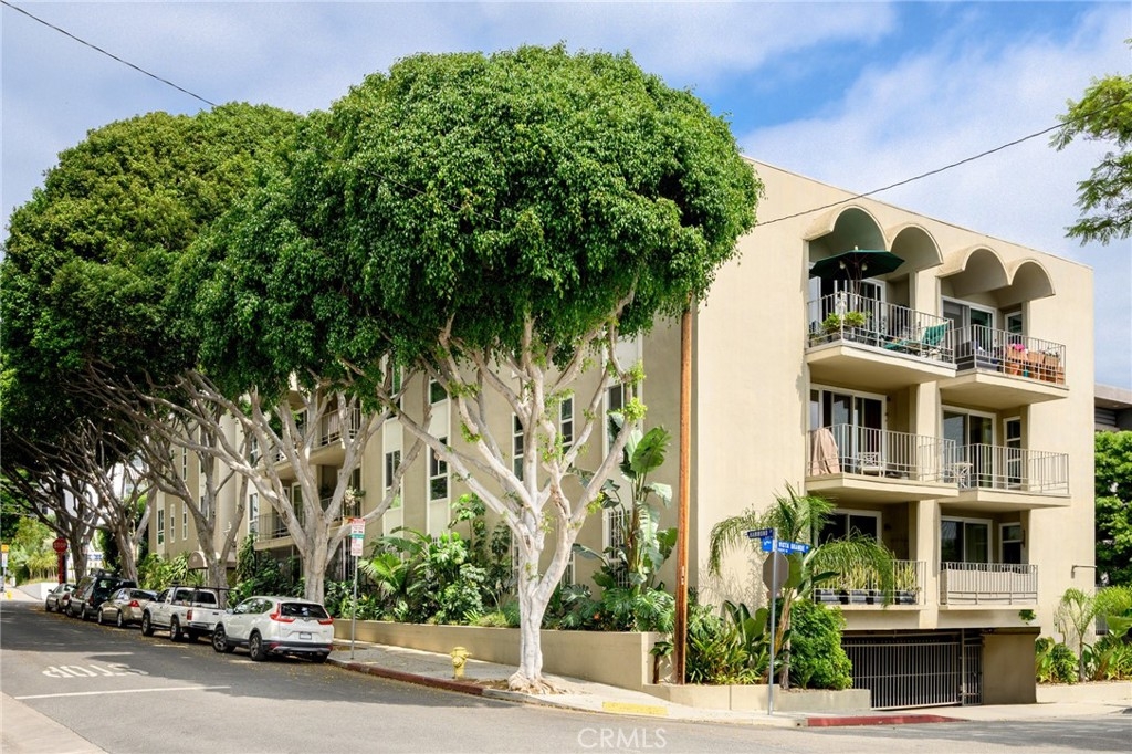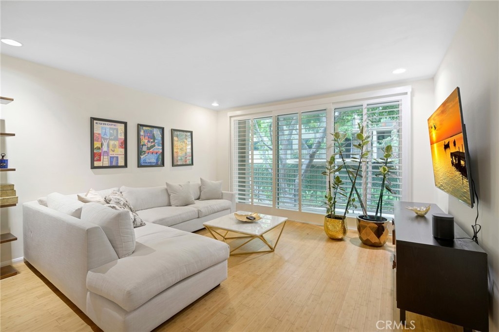 Nestled on a tranquil tree-line street, this delightful second-floor condo, boasting one bedroom and one bathroom, enjoys an exceptional location at the heart of West Hollywood's Norma Triangle. As you step inside through the impressive double doors, you'll be greeted by a generously proportioned living and dining area flooded with natural light, featuring exquisite bamboo hardwood flooring. The living space extends seamlessly to a spacious west-facing balcony, accessed through dual-pane sliding glass doors adorned with plantation shutters, offering peaceful treetop vistas – an ideal setting for outdoor gatherings. The galley kitchen retains its original cabinetry and includes a gas range/oven, microwave, dishwasher, and refrigerator. In the bathroom, there's a separate vanity sink area with ample room for grooming essentials, allowing one person to prepare for the day while another enjoys a private shower. The roomy bedroom provides plenty of space and comes equipped with custom closet organization. Additionally, secure gated parking for one car is provided and there’s an adjoining laundry room for the community to share. This residence is conveniently located mere moments from Soho house, Whiskey A Go Go, Sur, The Abbey, Gracias Madre and other iconic restaurant & shopping venues along both Santa Monica and Sunset Boulevard.