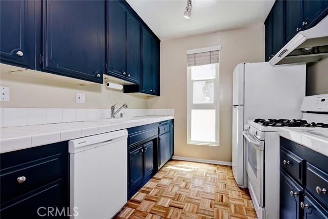 This single-level condo is located in a gorgeous tree-filled neighborhood at the foot of the hills in West Hollywood. This 2 bedroom, 2 bathroom home has approximately 998 sqft of living space. The living area is spacious with a patio to give the ever sought-after, indoor-outdoor living feel with plenty of room for activities. The dining area leads into the charming kitchen complete with timeless Herringbone wooden floors. Both bathrooms feature white countertops and black cabinetry which give the charming abode a modern feel. Close to many restaurants and shops, this condo is sure to meet all your needs!
