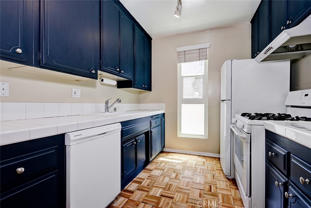 This single-level condo is located in a gorgeous tree-filled neighborhood at the foot of the hills in West Hollywood. This 2 bedroom, 2 bathroom home has approximately 998 sqft of living space. The living area is spacious with a patio to give the ever sought-after, indoor-outdoor living feel with plenty of room for activities. The dining area leads into the charming kitchen complete with timeless Herringbone wooden floors. Both bathrooms feature white countertops and black cabinetry which give the charming abode a modern feel. Close to many restaurants and shops, this condo is sure to meet all your needs!