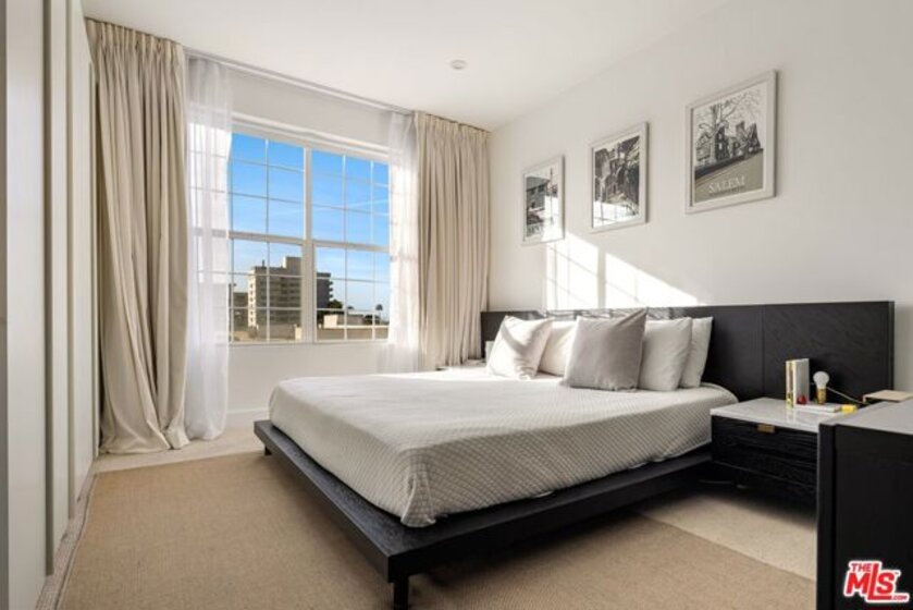DRAMATIC TOP-FLOOR CORNER UNIT IN DOHENY'S MOST SOUGHT-AFTER LOW RISE. Exceptionally redesigned from top to bottom, this thoughtful and extraordinary 2-bedroom, 2.5-bath loft-style residence showcases sublime craftsmanship and unsurpassed attention to detail. The main level features two spacious bedrooms and two beautifully appointed bathrooms, while the upper level offers an open office or flex space, a powder room, and direct access to a private rooftop outdoor deck. The living room opens to a private balcony complete with a retractable awning, creating an ideal shaded outdoor retreat. The remodeled modern kitchen is a true centerpiece, featuring a Bosch gas range, sleek contemporary cabinetry, and a generous pantry area. The kitchen opens seamlessly to the expansive open floor plan, making it perfect for entertaining and everyday living alike. Every element was custom-designed specifically for this home, creating a refined blend of form and function. The sun-filled interior is highlighted by dramatic architectural details, including a floor-to-ceiling glass-enclosed loft, a striking statement bookcase, and an elegant fireplace. High-end finishes include heated bathroom floors, Italian marble, and French oak hardwood flooring throughout. Located on one of West Hollywood's most sought-after streets, this is a rare opportunity to own a truly special condominium in the prestigious Doheny Place, an exclusive 41-unit full-service luxury building. Amenities include 24-hour security and concierge service, a heated swimming pool, spa, his-and-hers sauna and steam rooms, a fully equipped fitness center, gated side-by-side parking, and a private storage unit. HOA dues include earthquake insurance, internet service, and basic Spectrum