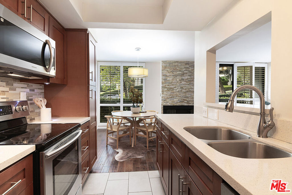 This beautifully updated 2 bedroom 2 bathroom condominium in Alta Loma West is located on a very quiet tree lined cul-de-sac street in one of the most in demand areas of West Hollywood. This unit is just steps away to the Sunset Strip, the exclusive Sunset Marquis Hotel, Holloway House, world renown restaurants, bars and cafes as well as top tier gyms(Equinox, John Reed, Barry's, Soul Cycle), upscale boutiques and grocery stores. Unit features include wood flooring, central heat and AC, updated kitchen and bathrooms, custom fireplace, floor to ceiling windows and sliding glass doors, plantation shutters throughout and it is an end unit with only one common wall. There are generous storage areas in unit and in parking area. 2 side by side parking spaces which are the widest and best location in the building. Building amenities include: Extensively updated lobby/lounge areas/hallways, pool and sundeck, fitness room, sauna and well maintained grounds and landscaping. HOA fees include: Maintenance of building and grounds, internet, cable TV, earthquake Insurance, building Insurance, sewer, trash, water and gas. This is a fantastic unit in an amazing location at a great price and should not be missed!