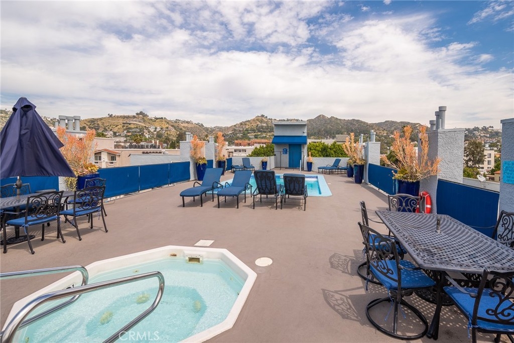 Beautiful condo centrally located in the heart of West Hollywood. Situated on a tree-lined street, walking distance from the famous Sunset strip, Runyon Canyon, and LA’s Restaurant Row. This move-in ready condo offers 1-bedroom, 1-bathroom, new luxury vinyl flooring, fresh paint, large updated bathroom and spacious custom walk-in closet. Lots of upgrades including recessed lights, dimmable LEDs, Nest thermostat to name a few. This condo is one of the few condos in the area with a rooftop pool (saltwater), jacuzzi, BBQs for entertaining, and breathtaking 360 degree views. Other amenities include a gym, 2-assigned parking spaces, secure/gated garage, security cameras and low HOA dues. This amazing unit has everything and won’t last long!