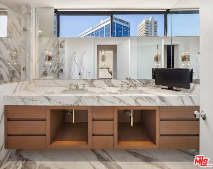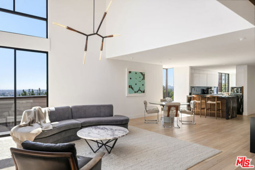 Set within The Carolwood Condominiums-an award-winning Ron Goldman, FAIA design-this rare Penthouse combines architectural significance with contemporary luxury. One of only two south-facing units and the largest in the complex, it offers city-ocean views and includes a private 600 sq ft rooftop terrace overlooking Beverly Hills. Interiors feature soaring 16th-ft ceiling (living room), floor to ceiling windows, and French oak floors. The open plan flows through a dramatic living room, den and office into a marble-clad designer kitchen with Sub-Zero, Miele and Wolf appliances. The primary suite includes a custom walk-in closet and spa-like marble bath with heated floors and Waterworks fixtures. 2nd bedroom on the ground floor includes an additional slab marble bath with Waterworks fixtures . Resort-style amenities-pool, spa and gym-complete this exceptional residence, moments from Soho, Bird St, Boa, The Edition and West Hollywood's most iconic destinations. This Penthouse is one of a kind and rarely comes on the market.
