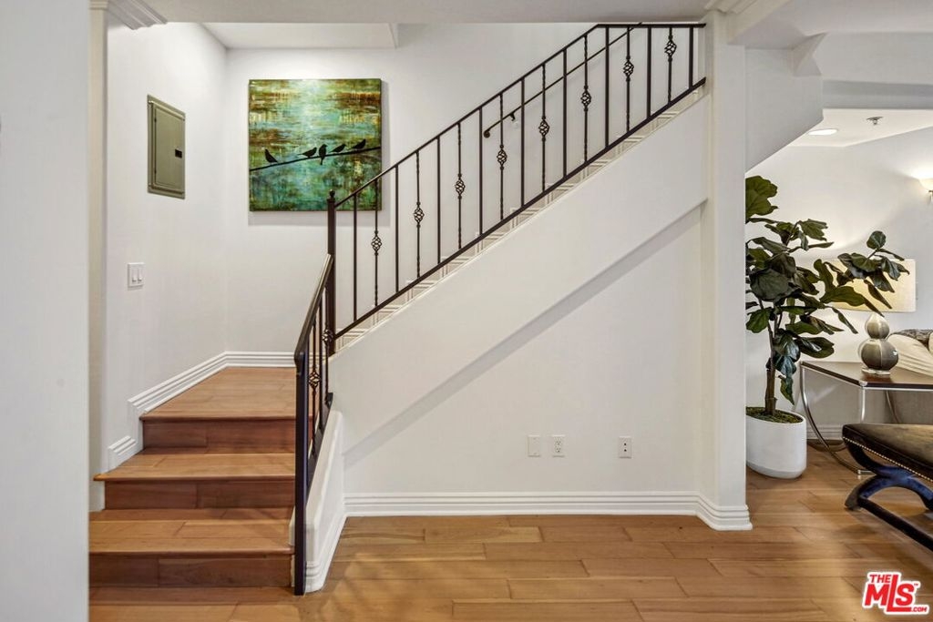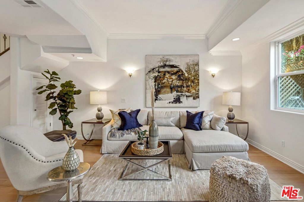Stunning, modern 2BR/2.5BA+den townhome in an amazing West Hollywood location! "Newer" Mediterranean building completed in 2005 with 19 units. Incredibly private and quiet property that feels like a single family home. Open living/dining/great room with French doors leading out to large patio makes for the ultimate in indoor/outdoor living. Spacious, cooks kitchen with stainless appliances, granite counters and ample cabinet space. Master Suite complete with walk-in closet, generous spa like bathroom with dual vanity. Another generous bedroom and office/den with built-ins round out the second floor. Other features include: Wood floor throughout, fireplace, washer and dryer in unit, central AC, secured entry, side by side parking. Gated entry leads to a beautiful courtyard with glass elevator. Amazing location close to all the trendy restaurants/shopping on Santa Monica Blvd, Melrose in West Hollywood. Don't miss this special property.
