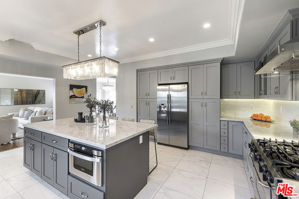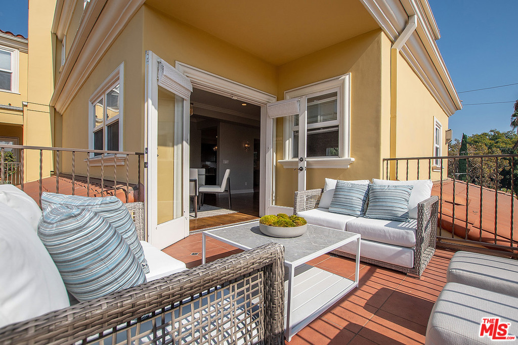 Newly remodeled 2-story, 3 bed + 3 bath condo townhome in the highly desirable City of West Hollywood. Gated entry leads to beautiful gated courtyard w/ glass elevator. Spacious remodeled designer kitchen w/ large center island, built-ins with loads of storage, Carrera marble countertops + backsplash, fridge, dishwasher, microwave, range oven, wine fridge. Kitchen opens to dining room + living area with views + gas fireplace + large balcony overlooking courtyard and tree tops. Refinished hardwood floors throughout. Second floor features stacked laundry, 2 large sunshine filled bedrooms w/ vaulted ceilings, 1 shared bath w/ tub/shower combo. Master bedroom w/ en suite bathroom, dual vanity sinks, large walk-in shower, spacious walk-in closet + private balcony with view of Hollywood hills and city lights. New HVAC 2020. Property contains rare side-by-side 2-car parking & spacious private storage space. Private, secure, fresh, move-in-ready in amazing central location!