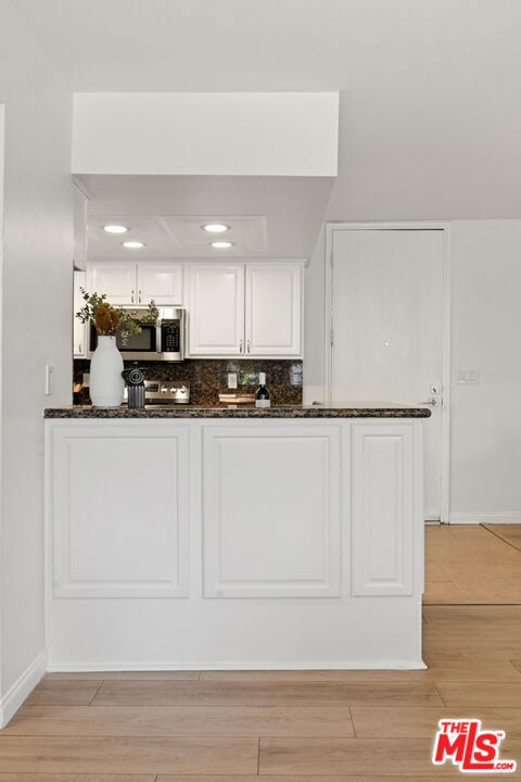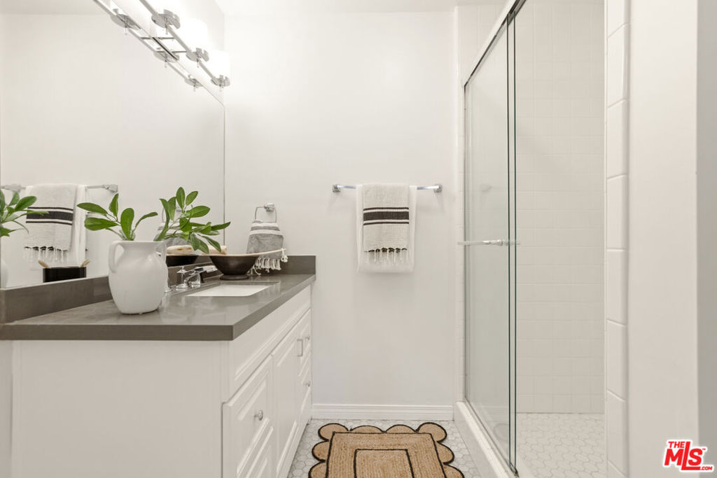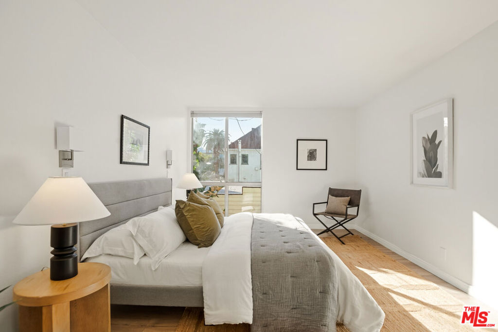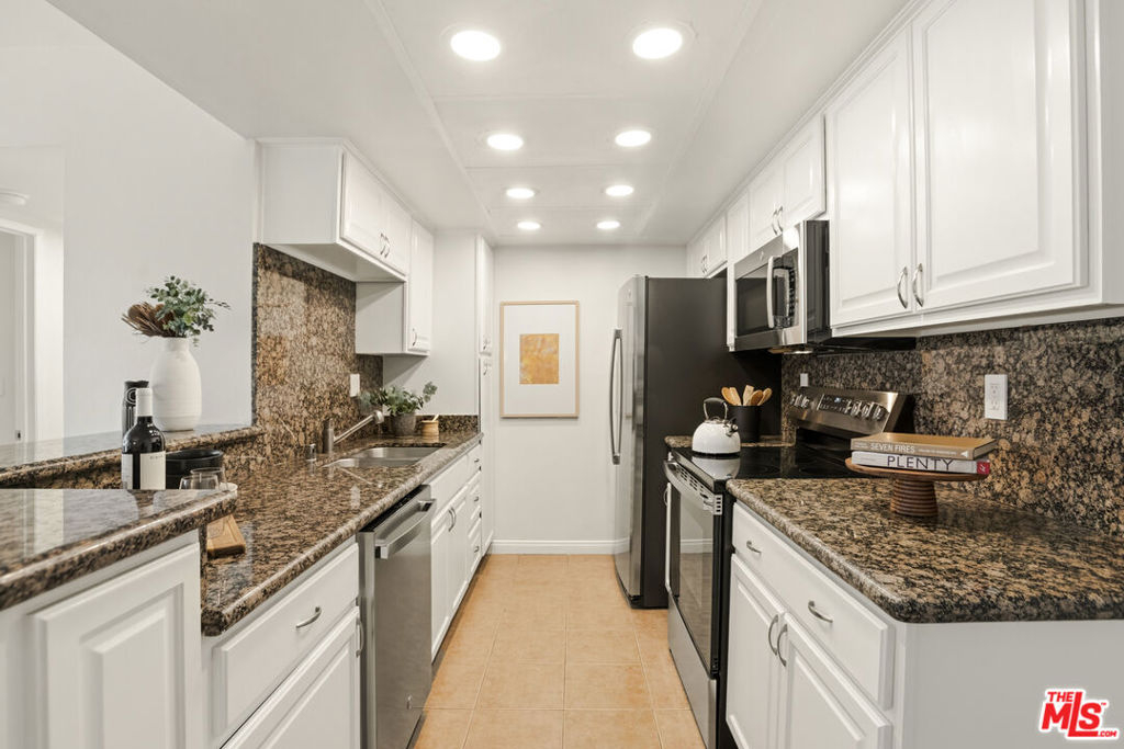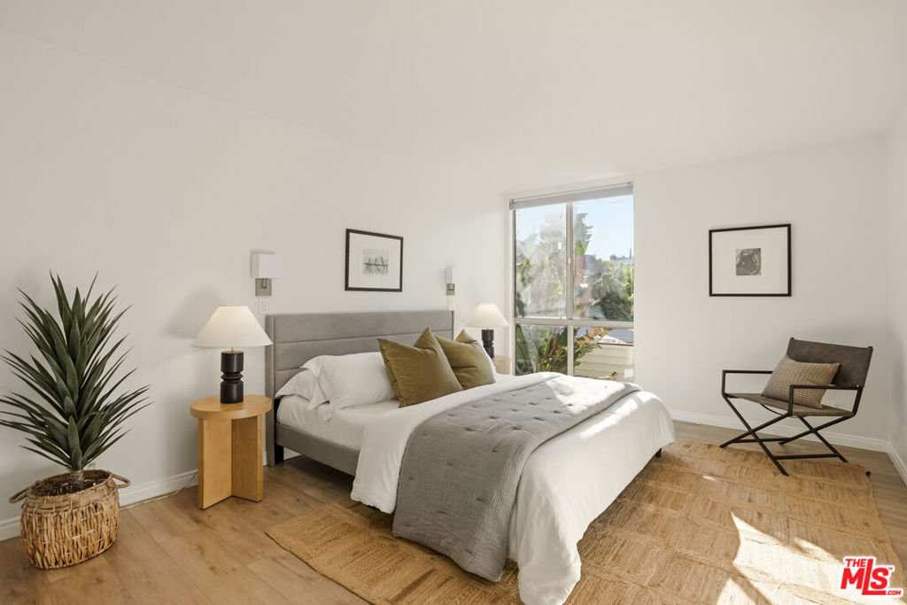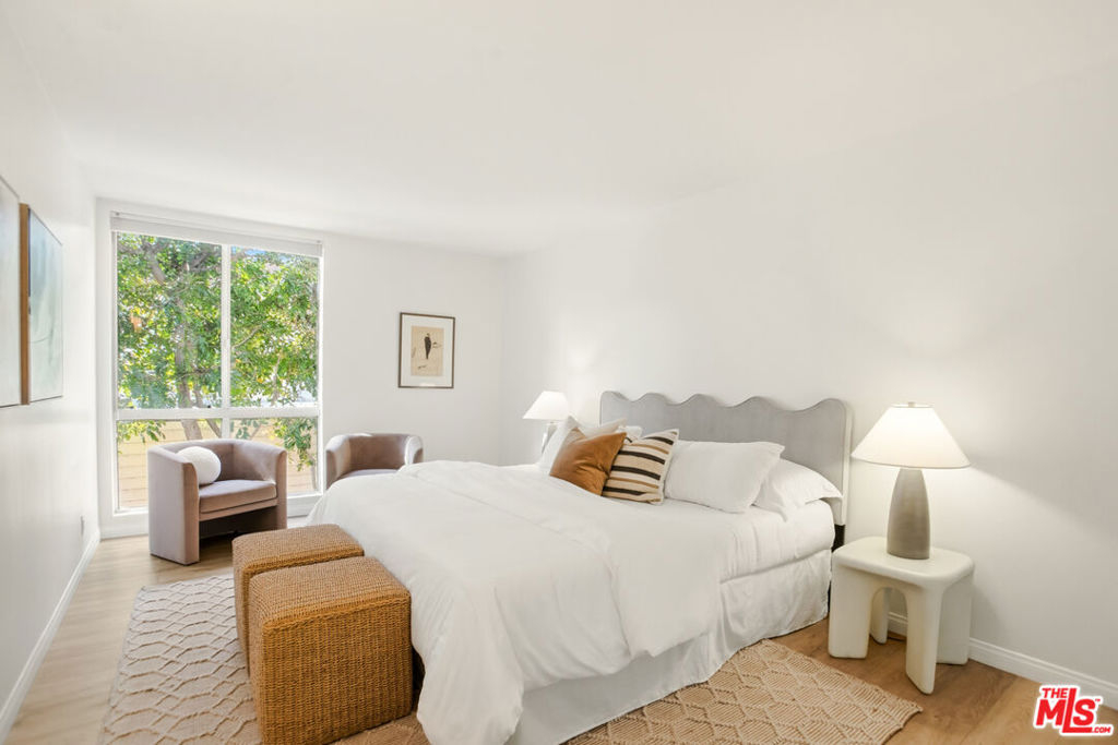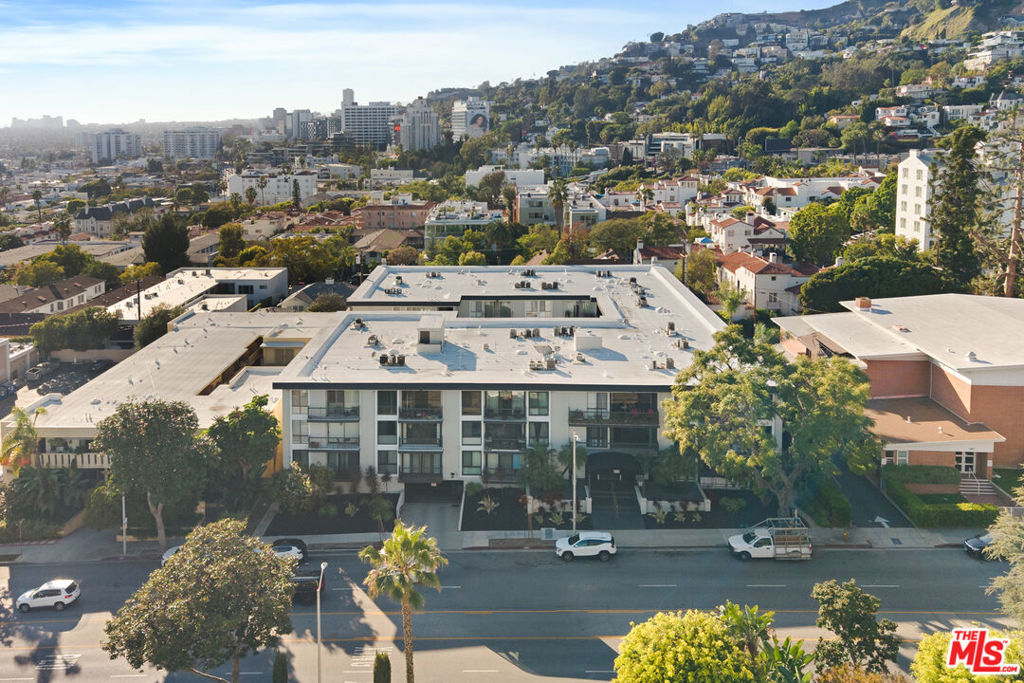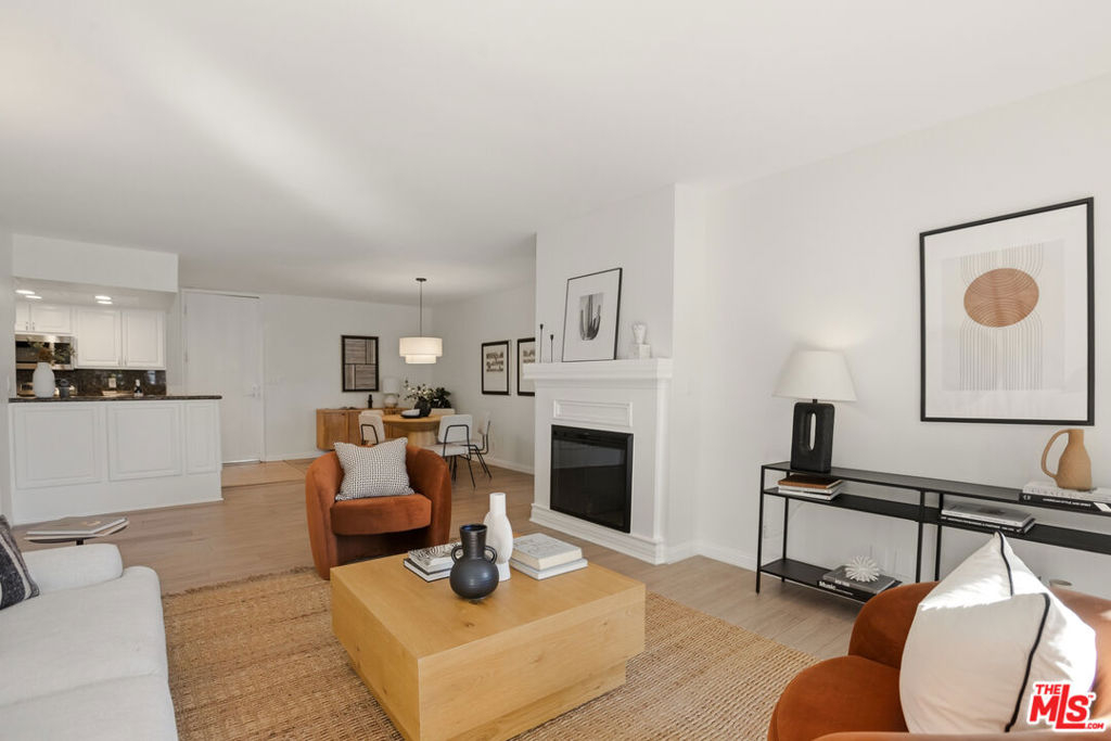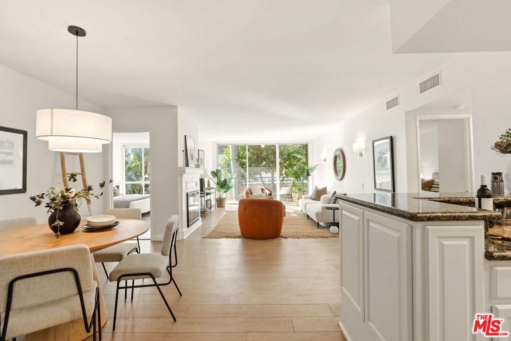 Centrally located just off the Sunset Strip in West Hollywood, this 2-bedroom, 2-bath, 1202 Sq. Ft. condo offers walkability to restaurants, cafes, grocery stores, entertainment, and the nearby movie theater, while positioned quietly in the rear of the building away from Crescent Heights Blvd with light and bright peaceful tree-top views. The open-concept living and dining area features hard-surface flooring throughout, a new electric fireplace, and a wall of glass with sliding doors leading to an oversized private balcony. Bedrooms are thoughtfully positioned on opposite sides of the unit, offering added privacy for guests, roommates, or a home office configuration. The open kitchen includes granite countertops and backsplash, brand new stainless steel appliances, and a dedicated dining area ideal for entertaining. The primary suite features an en-suite bathroom with a glass-enclosed tiled shower and organized closet systems. The secondary bedroom is adjacent to an updated hall bathroom with a sliding glass tub/shower enclosure. In Unit Laundry Hookups Can Be Installed. Building amenities include a new ButterflyMX video secure formal lobby, under construction pool/courtyard/lounge area, dedicated fitness room with controlled access, and earthquake insurance. Two car tandem parking included with extra storage. An excellent opportunity for buyers seeking a centrally located West Hollywood condo with privacy, amenities, and strong walkability.