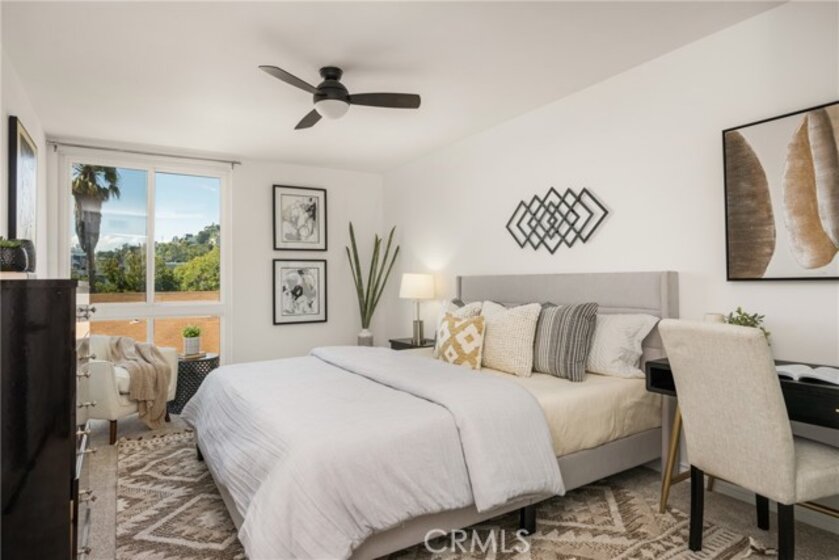 Welcome to Crescent Heights, where modern elegance meets vibrant city living. Perched in a prime location, this 2-bedroom, 2-bathroom condo boasts sweeping views of the scenic West Hollywood Hills—offering a daily backdrop of natural beauty and urban sophistication. Step inside to an open, light-filled layout appointed with luxury vinyl plank flooring and chic, contemporary design choices. The remodeled kitchen impresses with quartz countertops, custom cabinetry, and designer fixtures—perfectly suited for both everyday living and effortless entertaining. The spacious living and dining areas flow seamlessly onto a private balcony, an ideal spot to sip morning coffee or toast the sunset against a hillside silhouette. Throughout the home, thoughtfully selected finishes and stylish décor create a cohesive sense of calm and modern refinement. Each bedroom serves as a peaceful retreat, complete with generous closet space and en-suite or adjacent bathrooms. The bathrooms mirror the home’s contemporary design with clean lines and updated fixtures, blending form and function with ease. Enjoy 2 assigned (non-tandem) parking spaces for maximum convenience. Additional highlights include access to premium community amenities: a sparkling pool, fitness center, and 24/7 security cameras. With Sunset Boulevard and Melrose Avenue just steps away, you'll enjoy unmatched walkability to world-class shopping, dining, and nightlife. Whether entertaining in style or enjoying a quiet evening at home, this is luxury L.A. living at its finest.