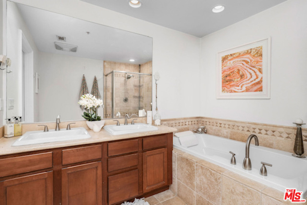 Motivated Seller!! Private turnkey top floor unit in the coveted Curson Villas. Wonderful natural light flows through the unit w/ a fantastic open floor plan ideal for entertaining that connects the dining/living room with a fireplace and balcony overlooking treetops and city lights. Hardwood floors, central heat & air, granite countertops, stainless steel appliances, and W/D in the unit. Your grand suite consists of a private balcony, large walk-in closet, travertine tile bathroom with soaker tub, and dual vanities. The 2nd bedroom has its own views w/ en-suite full bathroom and large closet. Walking distance to Farmer's market with an array of delights, close proximity to Runyon Canyon, Bristol Farms, Whole Foods, Trader Joe's, Griddle Cafe, Cheebo, short stroll to a brand new shopping/dining experiences in development on Sunset Blvd and wind down after work at El Compadre for a fabulous margarita. Special opportunity in a convenient location - amenities include secure parking + 6 guest parking spots, security cameras, and a fitness room/gym.