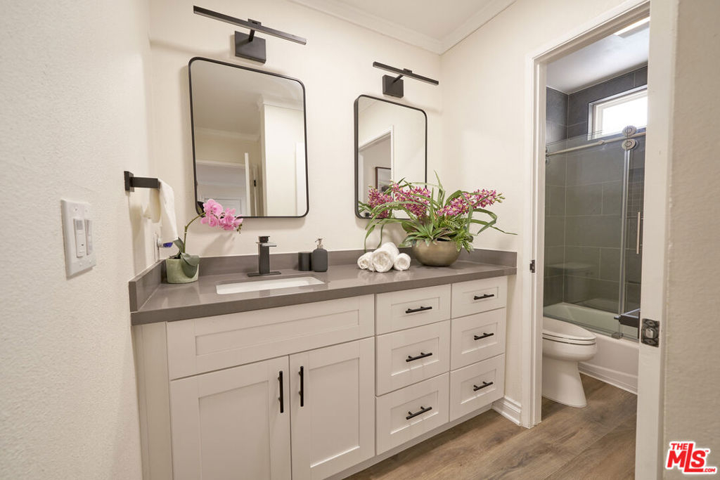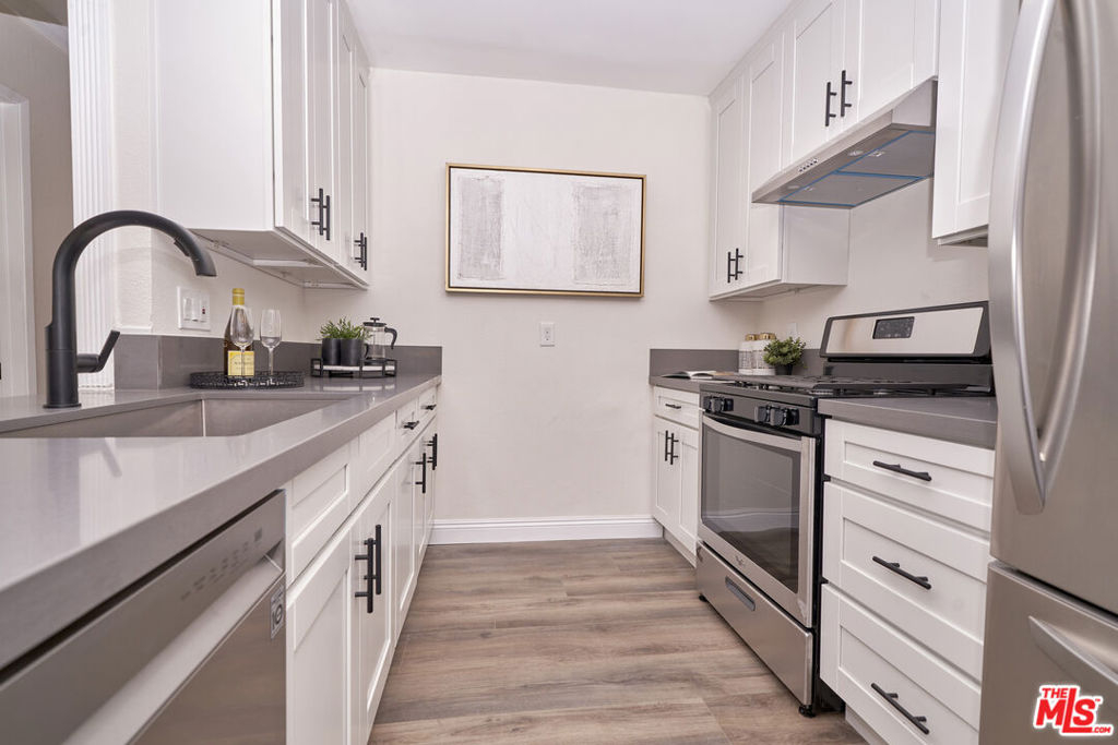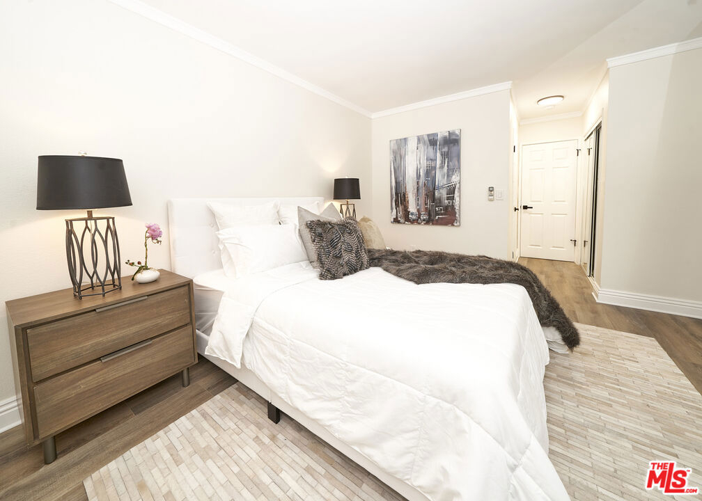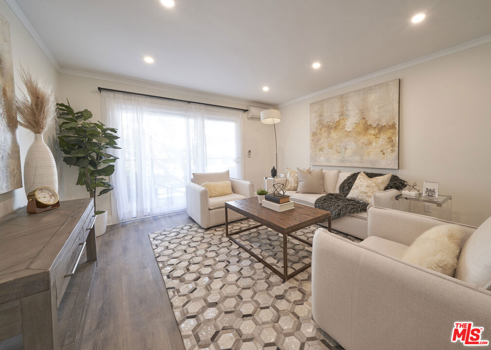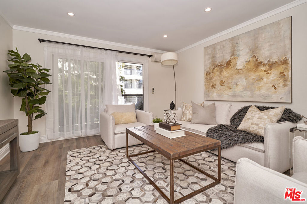 Nestled in the heart of West Hollywood, this beautifully remodeled condo offers an opportunity to live in the popular Norma Triangle neighborhood just two blocks from Beverly Hills & Sunset Strip. This private east-facing unit has an open floor plan with hard-surface flooring throughout and combines living, dining, and kitchen with a spacious balcony accessible from both the living room and the bedroom. It features a new kitchen with a cool faucet, large sink, and stainless steel appliances. New bathroom with iron cast bathtub with sliding glass door and modern fixtures. Crown moldings in the living room and bedroom. All windows are double-pane. Central mini-split A/C & Heat. In-unit hook-ups designed for Miele washer & dryer. Courtyard pool, 2-car gated garage assigned parking space, and low HOA dues include cooking gas and cable TV.