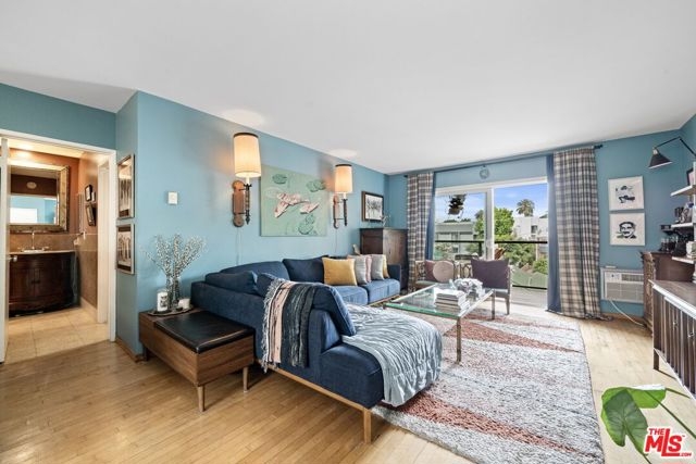 This top-floor condo offers an exceptional opportunity to live in the heart of West Hollywood's coveted Norma Triangle. The unit boasts an open floor plan with hardwood floors, granite countertops, double-pane Milgard windows, and a Miele washer and dryer. Plenty of storage and a walk-in closet. It is very private, with only one common wall. The living room and the bedroom open to a large balcony, providing ample natural light and outdoor space. Building amenities include a courtyard pool, a new fitness room/gym, and a gated garage with two assigned parking spaces. Gas cooking and water utilities are covered by the low HOA dues. The unit is ready for mini-split ductless A/C system installation. Located just two blocks from the Sunset Strip, Doheny Drive, and Beverly Hills, this condo offers easy access to Santa Monica Blvd, West Hollywood Park, WeHo Library, and Cedar Sinai Hospital. Enjoy the convenience of nearby shops, restaurants, and entertainment venues.