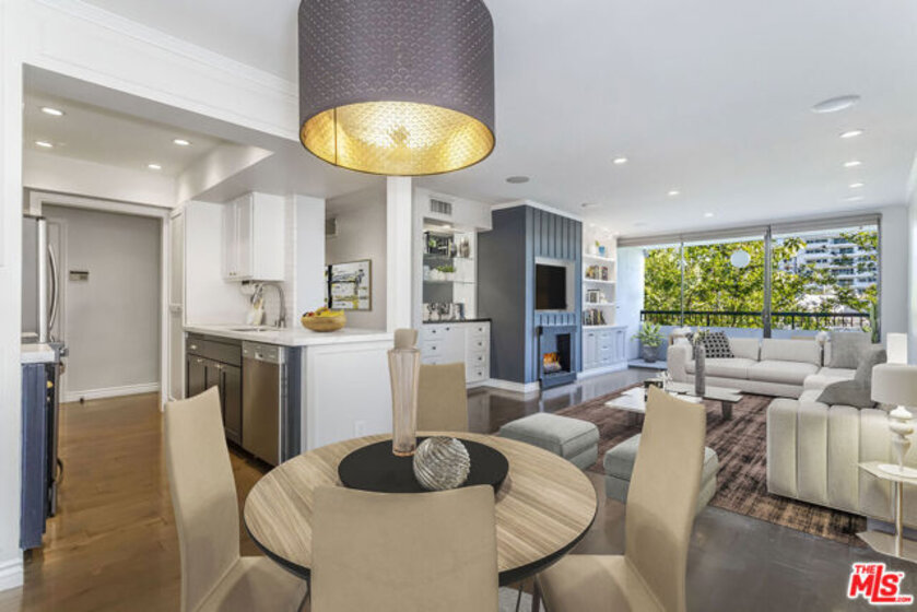 Located in the highly sought-after Doheny Terrace at the crossroads of West Hollywood and Beverly Hills, this upgraded condominium is one of the most desirable in the building. Quiet, private, and extensively improved, it sits well above street level with southern exposure. Unit #311 features rich hardwood flooring throughout, fireplace, a reimagined kitchen with high-end appliances and streamlined cabinetry, and thoughtfully renovated bathrooms with quality fixtures and finishes. Oversized windows bring in abundant natural light, and the floor plan offers a balance of separation and flow, making it ideal for both entertaining and working from home. Both bedrooms are generously sized with ample closet space, and the primary suite includes an en-suite bath and ample closet space. Additional features include IN-UNIT LAUNDRY (stacked machines), dedicated 220v electric car charger, central HVAC, and a quiet balcony facing Cynthia Street. The building, located in the highly desirable Norma Triangle, offers amenities such as a sparkling pool, sauna, gym, and a shared laundry facility (as mentioned, this unit has its own in-unit laundry). The best of Los Angeles' dining, shopping, and nightlife is just outside your door. Two gated tandem parking spaces near the elevator and low HOA dues of $682.40/mo., which includes earthquake insurance for the building. Seller to pay pending assessment, which is $87/mo. for building improvements. Photos are virtually staged.