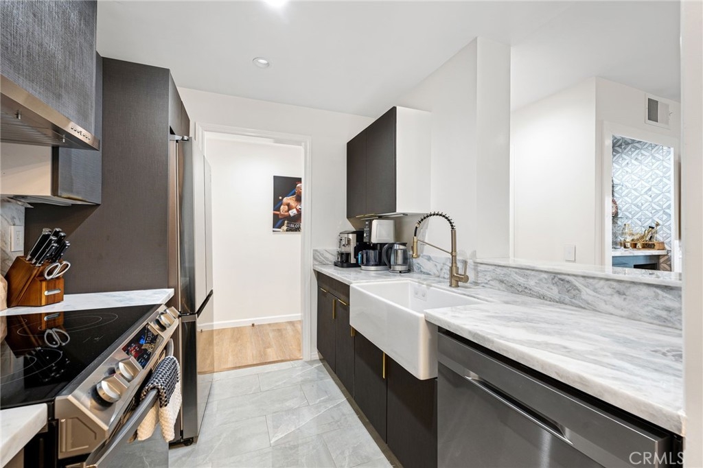 Welcome to your dream home at the Doheny Terrace! This luxurious 1-bedroom, 1-bathroom condo is located in the highly sought-after Norma Triangle neighborhood of West Hollywood, bordering Beverly Hills. Step into a beautifully designed space featuring a sleek, modern kitchen with Namib Fantasy Quartzite countertops, custom cabinets, and brand-new Samsung appliances, including a WiFi-equipped stove that connects seamlessly to a smartphone app. The open-concept living area is bathed in natural light, enhanced by custom shades, and features elegant French balcony doors leading to a serene turf patio—perfect for relaxation. The spacious bedroom boasts a custom walk-in closet, offering ample storage, while the spa-like bathroom indulges with a deep soaking tub, a Bluetooth ventilator, a heated toilet with a bidet function, and a dual vanity sink with a granite countertop and modern fixtures. Designed for effortless entertaining, this condo also features a built-in bar with a sink and a wine fridge—ideal for hosting. Plus, its prime location offers walking distance from Bravo Toast and moments from the Sunset Strip, Rodeo Drive, and the Beverly Center. Don’t miss this rare opportunity to own a slice of luxury in one of West Hollywood’s most coveted neighborhoods. Experience the sophisticated yet comfortable lifestyle that awaits you at Doheny Terrace.
