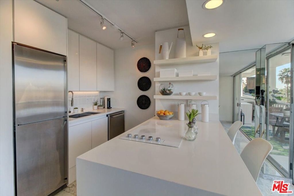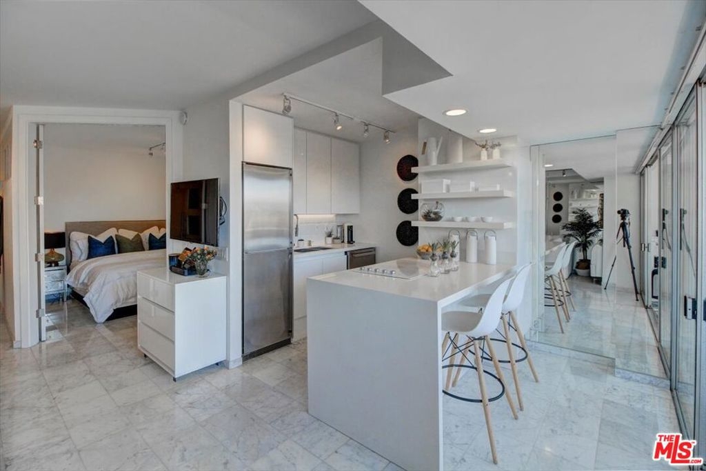 Welcome to Doheny Towers, located at the heart of the entertainment capital, just steps from the iconic Sunset Strip, The Edition Hotel, Soho House, BOA and the Rainbow Room; on the border of Beverly Hills; at the base of the Hollywood Hills; and a quick stroll away from the lively restaurants and nightlife on Santa Monica Boulevard. This wonderful, full-service building offers 24-hour concierge and staff, valet parking for guests, closed circuit monitoring, on-site management, a well-equipped exercise room, along with a newly renovated and not yet completed salt swimming pool, spa, sauna, and incredible hotel-level outdoor space. Unit 207 enjoys both street level and bird's eye views with the shimmering backdrop of Downtown views and iconic LA palm trees peeking over the building tops, which reflect on the mirrored walls of balcony and unit, offering charming views from all angles, day and night. This light and bright unit mixes old school charm and modern conveniences and finishings. Kitchen features SieMatic floor-to-ceiling cabinets with pull-outs and hidden storage, Caesarstone counter tops, a Liebherr built-in refrigerator, a Bertazonni convection oven and dishwasher, and a filtered water faucet. Amazing storage has been built-in to this wonderful unit with 4 floor-to-ceiling wardrobe closets, a storage/linen closet (with electric, in case you want to tuck away printers or other electronic equipment) and a bar area, along with a hidden knife drawer in kitchen and hidden drawer with lock for valuables. The King sized bed is a storage bed by Bo Concept (there are many other versions on the market as well), but another great way to maximize storage). Rentals are not allowed the first year of ownership and short-term rentals are never allowed. 1 pet under 25 lbs is allowed.