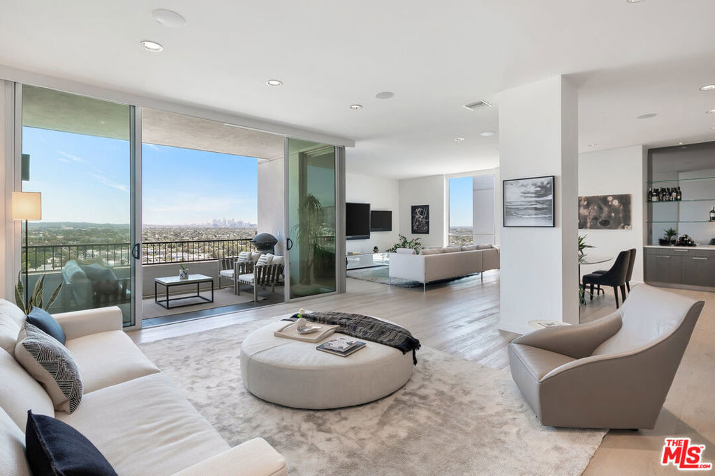 CORNER PENTHOUSE IN A PREMIERE WEST HOLLYWOOD FULL SERVICE BUILDING, EMPIRE WEST. Completely updated, featuring hardwood floors, 10 ft ceilings, Miele kitchen, and views from every room overlooking Downtown, Hollywood Hills, and beyond. Double doors to the large foyer, lead you into the open living room, dining room, and den with multiple seating areas. The open kitchen features a built-in bar to the dining area backdoor and is beautifully appointed. Spacious primary bedroom, with a generous walk-in and a spa-like bath, and access to the patio. The second fully self-contained bedroom, features a private balcony, walk-in closet, and bathroom. An additional powder room off of the living room. The building amenities include a rooftop swimmers pool, his and her baths, multiple seating and lounge areas, fire pit, BBQ, outdoor bar, and a private clubhouse for resident's personal use. Also, there's a fully equipped gym and a full-size tennis court. 24-hour concierge, valet, ample visitor parking, and steps away from the best West Hollywood has to offer, Madeo's, Equinox, Dialogue, and numerous other restaurants and cafes.