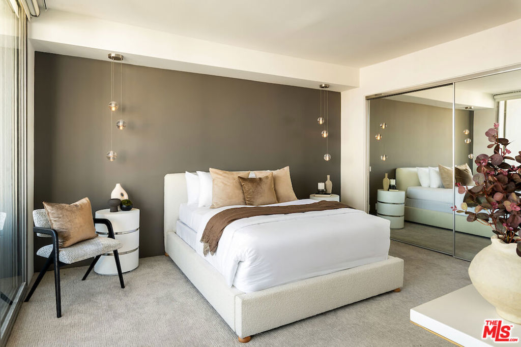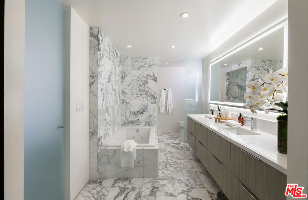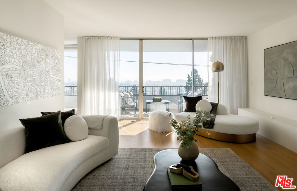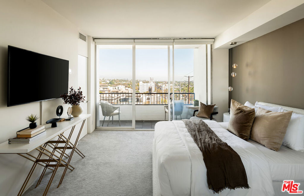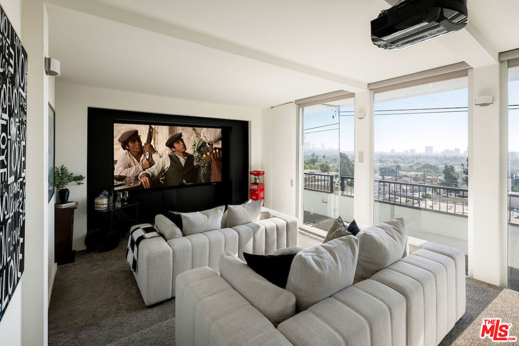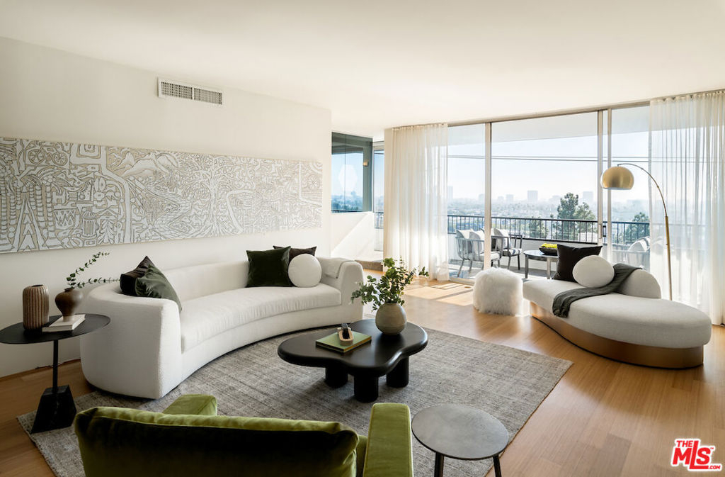Welcome to this stunning residence in the acclaimed Empire West, a full-service building located in the heart of West Hollywood. This 7th-floor corner unit showcases jetliner city views throughout all 2,246 SqFt of this expertly curated open floor plan, highlighted by exceptionally exquisite finishes. An expansive terrace off of the living room seamlessly blends indoor-outdoor living soaking in an abundance of natural lighting and provides an al-fresco dining opportunity. A state-of-the-art tiered theatre with a projector is a rare addition to the entertainment space. Privately tucked away, the primary suite offers a luxurious marble clad ensuite with dual sinks and soaker tub, leading into the generous walk-in-closet with custom built-ins. This 24/7 luxury building caters to the most discerning residences with offerings of doormen and valet parking, guaranteeing 24-hour security and convenience, roof deck with outdoor seating, fire pit, pool and clubhouse with panoramic views of Los Angeles, a fitness center, and a championship-sized tennis court.