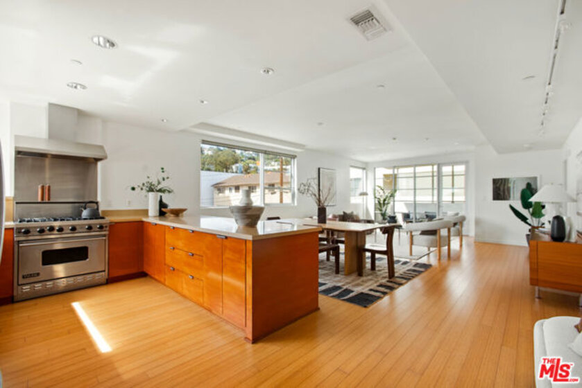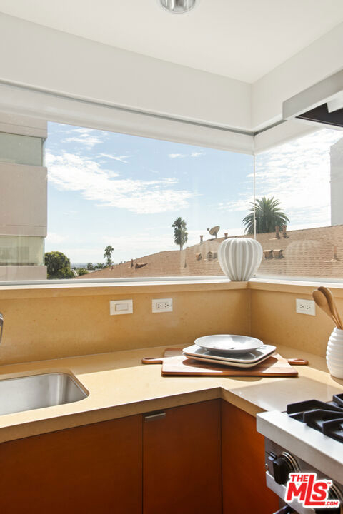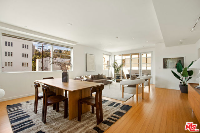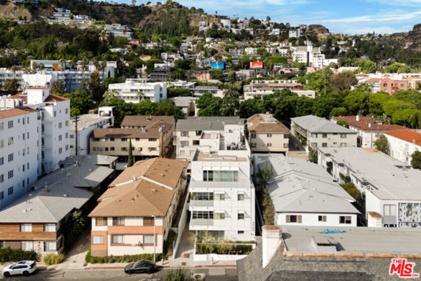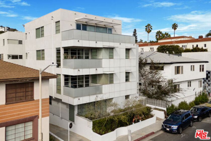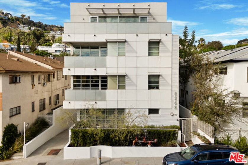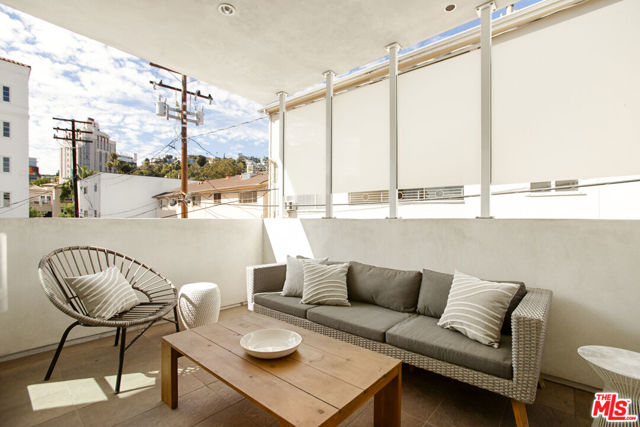 Discover your architectural urban home just off the famed Sunset Strip with exceptional dining, shopping, and entertainment just moments away. Tucked quietly at the rear of this boutique building with only 7 units, enjoy rare tranquility amidst the city's vibrancy with the unique advantage of having no common walls with other units, creating privacy and calm. This modern condo offers a seamless blend of style and convenience. Immediately sense the thoughtful design through the entryway hall opening up to single-level living, with an open concept kitchen with southern views and bar seating, ideal for ease and entertaining. Contemporary and upscale finishes create an inviting retreat while oversized windows encompassing all directions and floor-to-ceiling terrace walls of glass bathe the space in natural light. Step onto your private oversized terrace creating outdoor additional living space. Expansive primary suite offers ample closet space and a spa-like separate soaking tub and glass enclosed shower. The second bedroom/flex space features a walk-in closet and well appointed ensuite bathroom for guests. Convenient in-unit stacked laundry and two tandem parking spots included. Building amenities offer secure lobby entry, oversized elevator, courtyard area, and subterranean gated garage with guest parking.