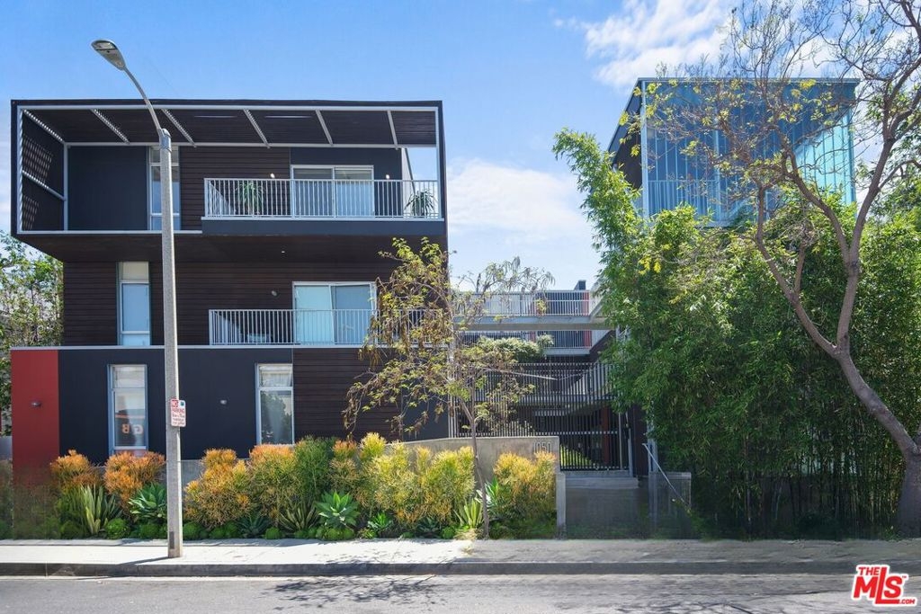 Discover a rare opportunity to own a piece of West Hollywood architecture. This top-floor, 2-bedroom, 2-bath penthousedesigned by award-winning Lorcan O'Herlihy and featured in Dwell has just received a strategic price adjustment, making it more accessible than ever. Step inside to an open-concept loft flooded with natural light, where 10' ceilings and wood-style floors frame panoramic Hollywood Hills views. The heart of the home is a sleek, chef-ready kitchen with stainless steel appliances, filtered sink water, and Caesarstone counters that flow seamlessly into the living area. Slide open the floor-to-ceiling doors and extend your living space to a private front balcony, in addition to your expansive rooftop terrace complete with bistro lighting and artificial turf perfect for sunset entertaining, morning yoga, or simply soaking in the skyline.Retreat to two serene bedrooms equipped with custom blackout shades and Lutron dimmers. Spa-inspired bathrooms showcase white onyx stone and luxe fixtures. Thoughtful upgrades throughout include a Nest thermostat, recessed LED lighting, and a full-size laundry closet. A retractable screen door keeps fresh air flowing. Enjoy the ease of secure, side-by-side subterranean parking, a private storage locker, bike rack, and building intercom entry. Situated between Melrose and Santa Monica Boulevards, you're nearby to Poinsettia and Plummer Parks, Whole Foods, Trader Joe's, and local favorites like Gigi's, Crossroads Kitchen, and La Bohme. The Grove and Runyon Canyon are minutes away for shopping and hiking. With its recent price reduction to $1,095,000, this boutique 10-unit penthouse blends striking design, modern comfort, and unbeatable WeHo convenience.