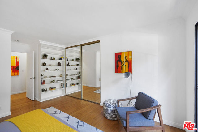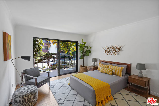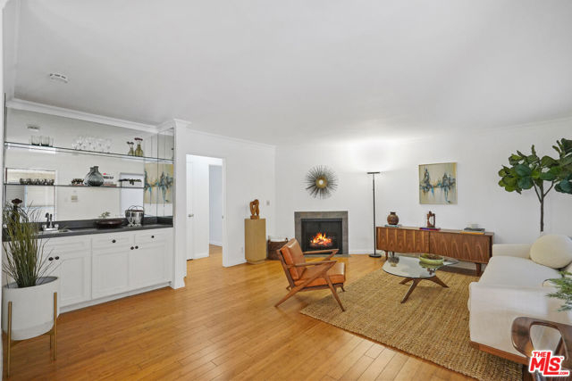 FIRST TIME BUYER ALERT! LOCATION, LOCATION, LOCATION! This spacious one bedroom condo in WeHo is located near Sunset Strip, the Pacific Design Center and blocks from Melrose and Santa Monica and all of the hip and trendy clubs, restaurants and shopping. The open living room has wet bar, gas fireplace, bamboo floors and oversized windows. The spacious bedroom has a huge closet, built in shelves and large balcony overlooking lush landscaping. Enjoy the pool, spa, sauna, BBQ, community room, private gated parking, extra storage and a secure bicycle room, all in this very clean and well maintained building. There's a potential to add laundry to the unit, with HOA approval. The exterior of the building is currently being painted a clean, modern white.