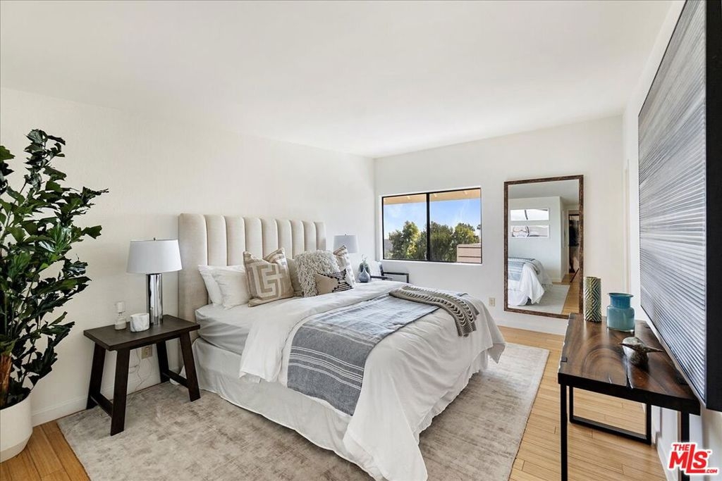 Light & Bright! Split level Condo located in Prime West Hollywood. This 1 bedroom 2 bath home is 1,048 square ft and has been updated with new countertops, fixtures and fresh paint. Enjoy the spacious living area or step out onto the balcony with breathtaking views of downtown and the PDC, perfect for entertaining. Kitchen complete with stainless steel appliances and eat-in breakfast nook, adjacent is a den with wet bar, could be used as a home office or formal dining. Building equipped with rec room, sauna and rooftop deck and additional storage in garage. Steps to Sunset Blvd and all the restaurants in walking distance. Short distance to SoHo House, shopping and best nightlife LA has to offer.