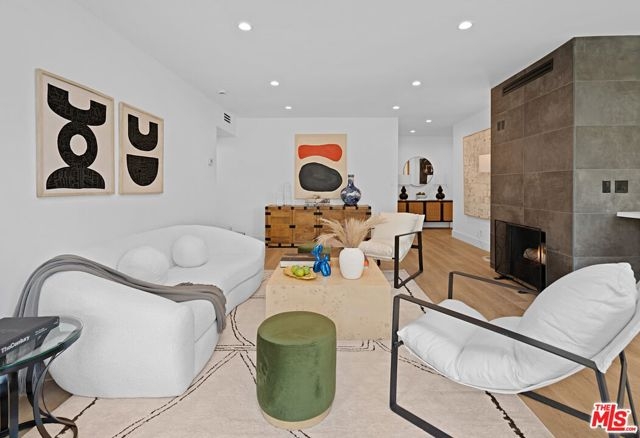 Never lived in after its full remodel, this bright and spacious 2-bedroom, 2.5-bath corner-unit condo blends modern design with comfort and ease. The airy interiors feature all brand new appliances, custom cabinetry, sleek finishes, smart climate control, a gas fireplace, and in-unit washer/dryer. Enjoy treetop views from both bedrooms, the living room, and kitchen - the perfect backdrop for morning coffee on the balcony. Just two buildings from Gelson's and only moments to celebrated fine dining and West Hollywood's vibrant nightlife, this location is as dynamic as it gets. Yet once you're home, the atmosphere is quiet, peaceful, and surrounded by greenery - with Kings Park next door for dog walks, a playground, and free Saturday theater. Practical comforts include two gated side-by-side parking spaces, designated guest parking in front, and a large storage unit. Low HOA dues provide resort-style amenities: gym, pool, spa, and sun deck. At day's end, unwind on the rooftop deck with a glass of wine, taking in sweeping views from Century City to Downtown Los Angeles. Unlike any cookie-cutter condo, this residence is a truly rare find - stylish, serene, spacious, and secure. A sanctuary in West Hollywood, ready to welcome its next owner. Come see this chic, cozy haven and reimagine the possibilities to make this your dream home!