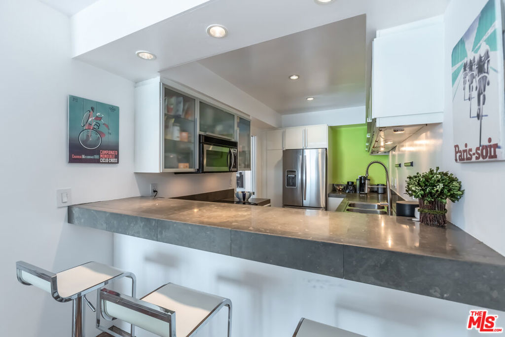 Gorgeous, Light-Bright remodeled Top Floor Unit located in the center of hip & trendy West Hollywood, close to all the best restaurants and shops! Walk into this modern, homey & peaceful retreat which includes a spacious remodeled modern kitchen with Stainless steal appliances, breakfast bar, large living room, dining room and spacious balcony all perfect for entertaining guests and having parties. Recessed lighting throughout most of the home, stunning bamboo wood floors in the bedroom and gorgeous Terra Cotta tiling throughout rest of condo. 2 Parking spots with LARGE storage cabinet next to parking! Building has heated pool & hot tub and huge roof top deck perfect for hangouts with friends and family. Building also has LARGE remodeled, refurbished Gym with Peoton bikes. HOA does allow you to add washer, dryer inside your unit AND Easy access to laundry 5' down the hall. VERY close proximity to wonderful lush City of West Hollywood Park down the street. Building very WELL MAINTAINED: Newly coated roof, elevator Refurbished recently and hallways remodeled.