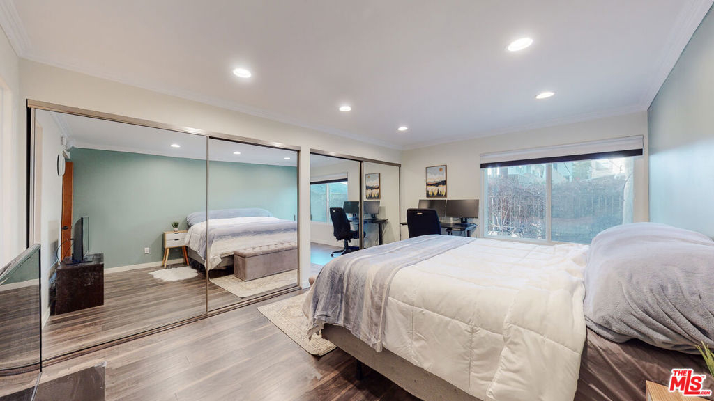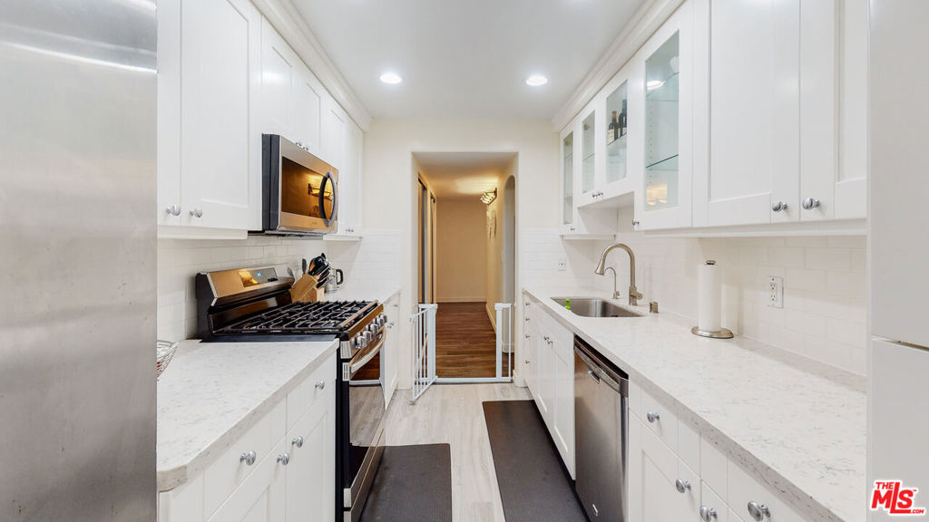 Elegant and Sophisticated Condo in West Hollywood! Centrally located in a highly coveted community, this 3BR/2BA, 1,627sqft corner-unit offers an abundance of style and function with an openly flowing floorplan, dimmable LED recessed lighting, gorgeous laminate flooring, tons of scintillating natural light, and an impressive living room with a cozy fireplace and sliding glass doors to the private balcony. Catering to modern needs with ample panache, the beautifully updated galley kitchen features stainless steel appliances, granite countertops, attractive white cabinetry, a gas range, recessed lighting, a built-in microwave, a dishwasher, and an adjoining breakfast nook. Fashioned for discerning homeowners, the primary bedroom boasts double mirrored closets with custom built-ins and an attached ensuite with dual sink vanity and a jetted soaking tub/shower combo. Two additional bedrooms are generously sized with dedicated custom closets, while the guest bathroom includes an oversized storage vanity and a shower/tub combo. Other features: 2-side-by-side garage parking spaces, in-unit laundry area, new HVAC, low HOA dues, bedrooms include energy-efficient dual-pane windows, less than 20-minutes from Downtown Los Angeles, close to shopping, dining, grocery stores, parks, fitness centers, and schools, and much more! With tons to offer in an ideal location, this turnkey condo will go quickly. Call now to schedule your private tour!