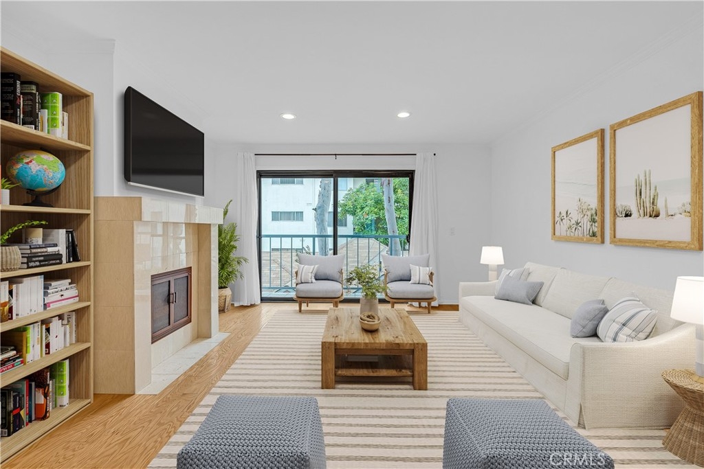 This beautifully maintained 2-bedroom, 2-bathroom European-style condo, perfectly situated in West Hollywood, offers a true taste of LA city living. This inviting space features an open living area, with a fireplace, expansive balcony sliding doors that flood the interior with natural light, rich hardwood flooring, tile finishes in the kitchen and bathrooms, kitchen off the living room space, ideal setting for hosting and entertaining. The primary bedroom includes a spacious closet and a private bathroom, while the second bedroom, adjacent to the other bathroom, offers versatility as a cozy bedroom or a functional office space. Condo also includes in-unit washer and dryer hookups and personal central air conditioning for year-round comfort, it comes with secure ground-level parking garage and two assigned parking spaces. Positioned between Santa Monica and Downtown LA, this central location offers unmatched convenience. Enjoy close proximity to some of LA’s most iconic destinations, including the Hollywood Bowl, Griffith Observatory, Griffith Park, and the Hollywood Sign and Hollywood Blvd. Located just two blocks from Plummer Park a neighborhood gem with a community center, tennis, pickleball and basketball courts, a community garden, picnic areas, playground and public parking off of Santa Monica Blvd. Within walking distance to premier dining, shopping, and nightlife in Hollywood and West Hollywood, this condo is perfect for those seeking a modern city lifestyle.