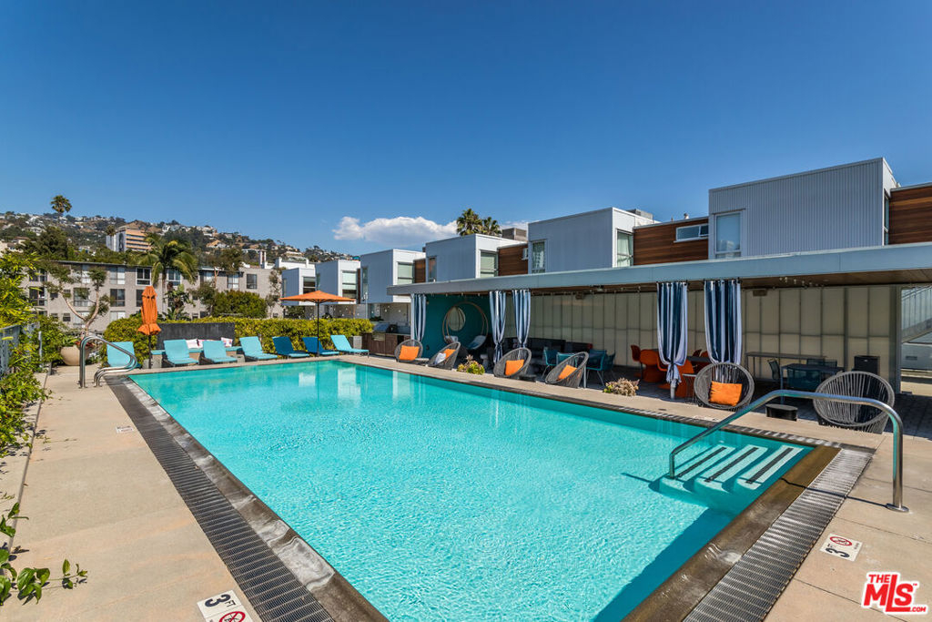 Contemporary light-filled Industrial Loft situated in the heart of West Hollywood. Located inside the award-winning building Designed by Koning Eisenberg Architects, this condo offers the perfect combination of newer construction, contemporary design and an amenity-rich package with both the building and location. This 2nd floor south-facing 1-bedroom + 1-bath unit features; open floorplan with walls of glass for light to pour in, tall ceilings, deep balcony space with tree-top views, Bertazonni Professional Series appliance package, large European design lacquered kitchen cabinets, walk-in closet, laundry closet with washer and dryer and beautiful polished concrete floors. Building features; Beautiful sun-filled pool & deck with view of the Hollywood Hills and BBQ area for entertaining, assigned garage parking, secured and gated entry and thoughtfully designed open-air walkways around the building. Truly the best value in West Hollywood for newer construction located in an incredible location with all the amenities of West Hollywood and The Sunset Strip.
