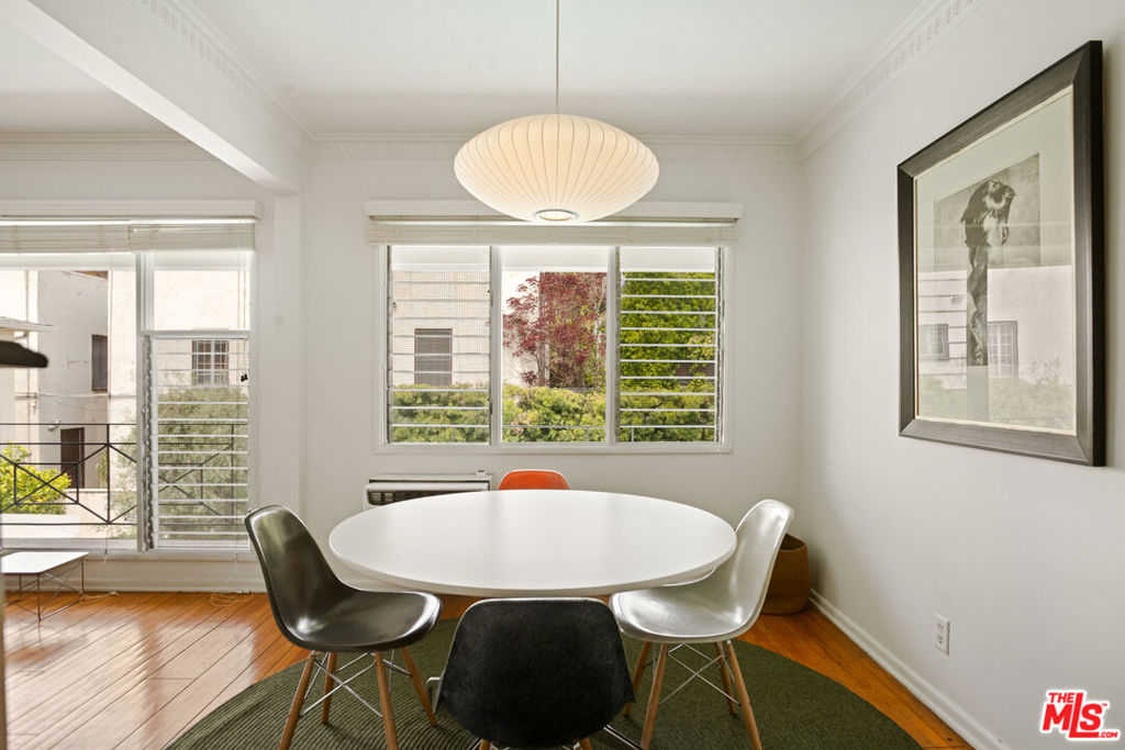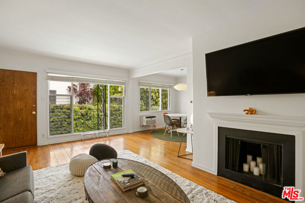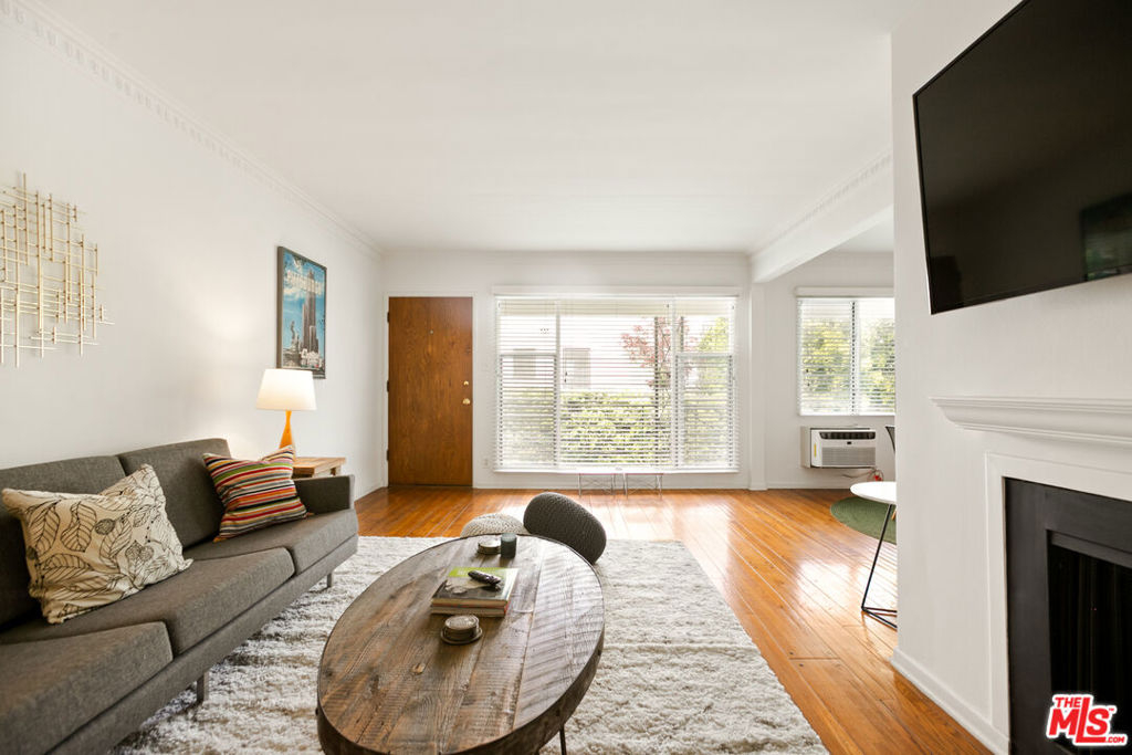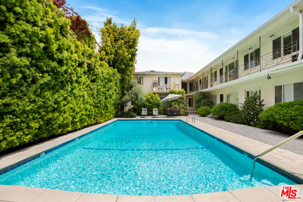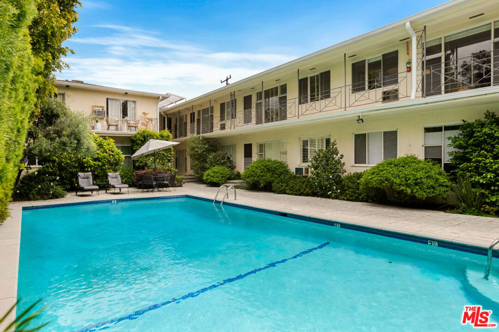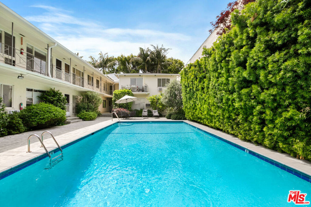 Step into the charm of classic 1950s West Hollywood living in this beautifully preserved courtyard oasis. Positioned on a quiet, tree-lined street, this intimate low-rise community offers a serene escape with a sparkling heated pool, lush landscaping, and inviting outdoor loungesyour private retreat in the heart of the city. This bright and airy walk up second level top-floor condo welcomes you with a spacious living area filled with natural light, elegant crown molding, and vintage character throughout. A flexible layout offers room for a home office area, while rich hardwood floors flow seamlessly into a tranquil bedroom with generous closet space and a brand new wall AC unit. The bathroom evokes timeless appeal with both a soaking tub and separate tiled shower. A charming kitchen and dining area make entertaining easy, while in-unit laundry may be added for modern convenience. Enjoy walk-down secure gated parking with overhead storage, plus on-site community laundry. Moments from Melrose, Santa Monica Blvd, and all that West Hollywood has to offer, this home combines mid-century warmth with everyday practicality a rare find in an unbeatable location.