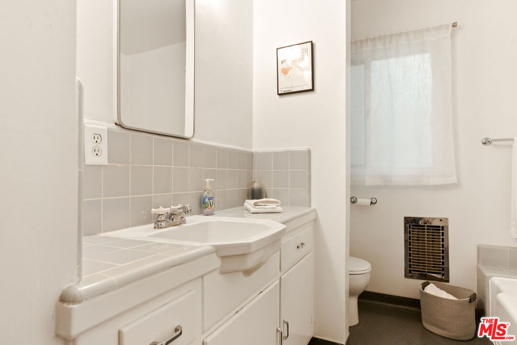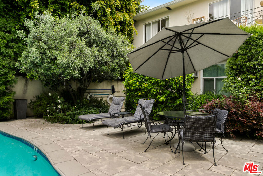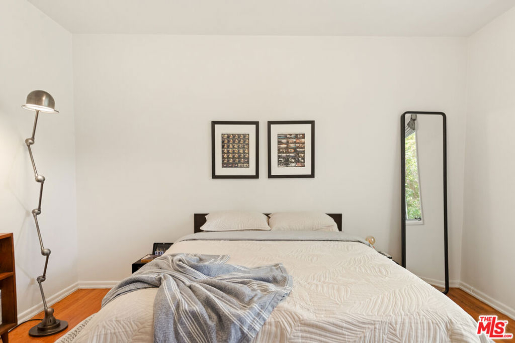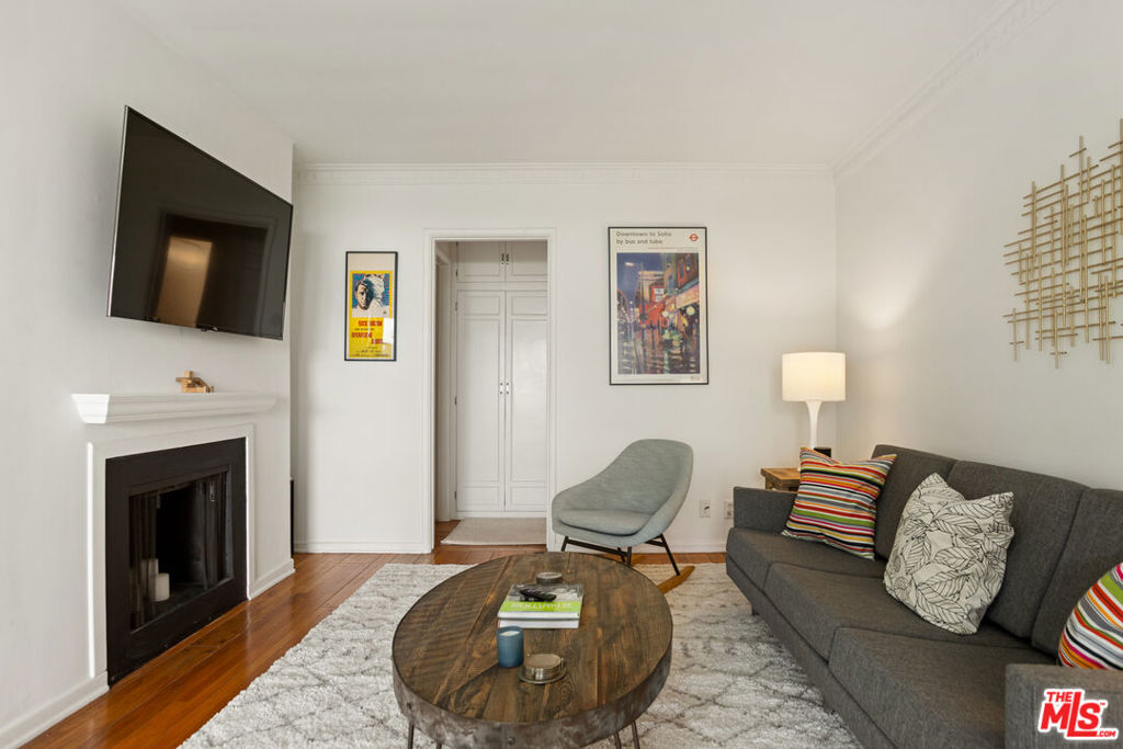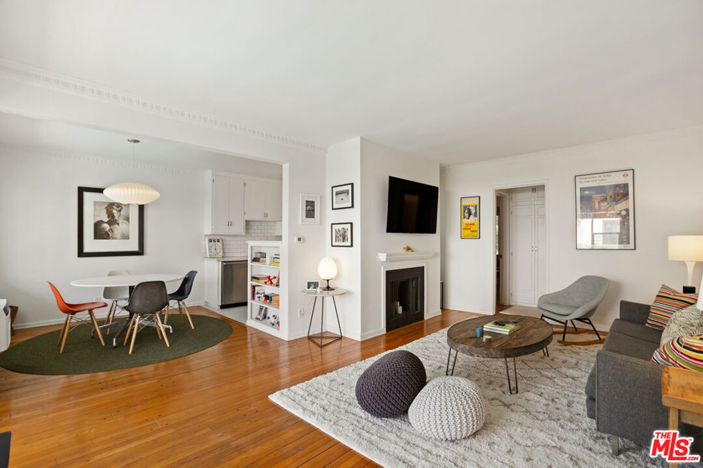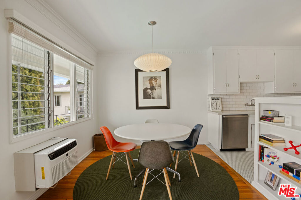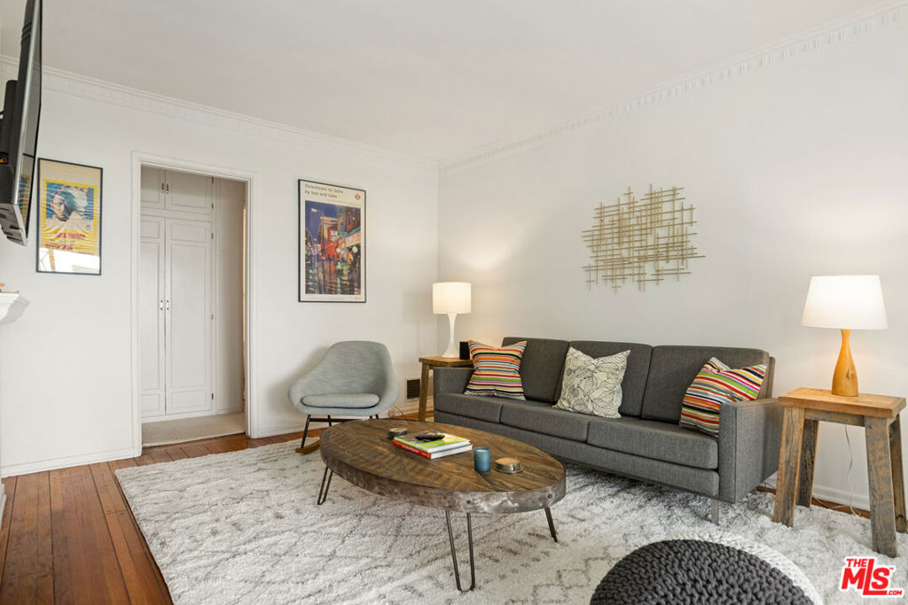 Step into the charm of classic 1950s West Hollywood living in this beautifully preserved courtyard oasis. Positioned on a quiet, tree-lined street, this intimate low-rise community offers a serene escape with a sparkling heated pool, lush landscaping, and inviting outdoor loungesyour private retreat in the heart of the city. This bright and airy walk up second level top-floor condo welcomes you with a spacious living area filled with natural light, elegant crown molding, and vintage character throughout. A flexible layout offers room for a home office area, while rich hardwood floors flow seamlessly into a tranquil bedroom with generous closet space and a brand new wall AC unit. The bathroom evokes timeless appeal with both a soaking tub and separate tiled shower. A charming kitchen and dining area make entertaining easy, while in-unit laundry may be added for modern convenience. Enjoy walk-down secure gated parking with overhead storage, plus on-site community laundry. Moments from Melrose, Santa Monica Blvd, and all that West Hollywood has to offer, this home combines mid-century warmth with everyday practicality a rare find in an unbeatable location.