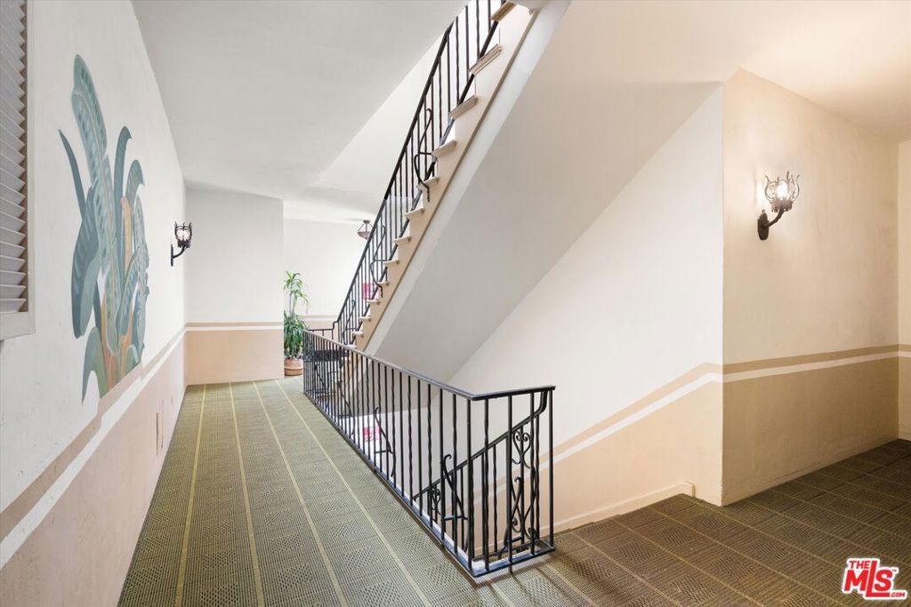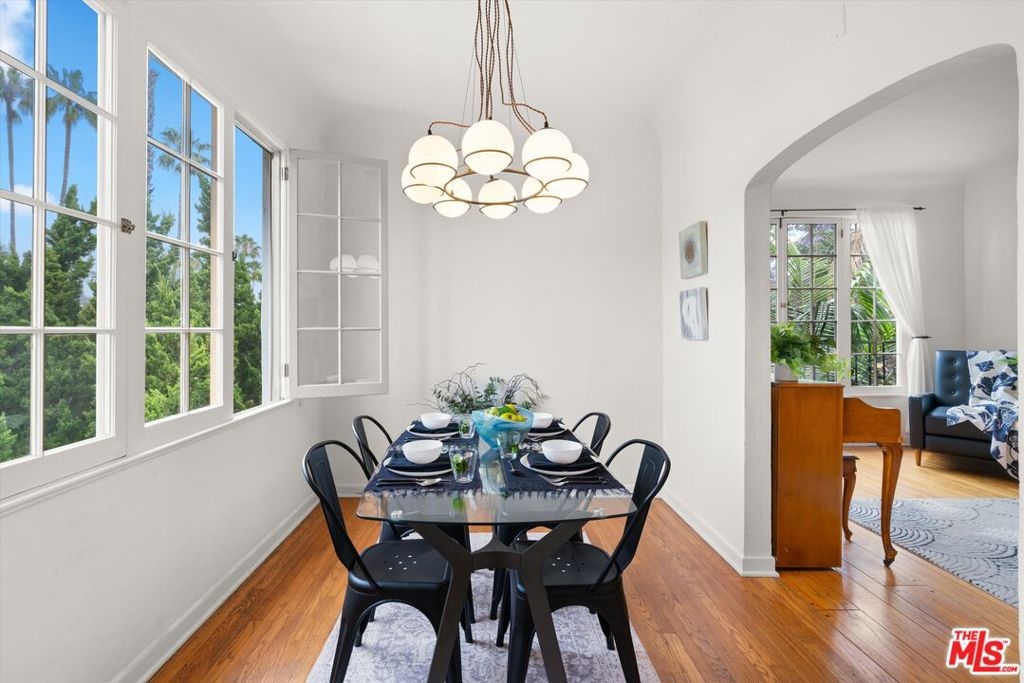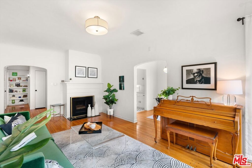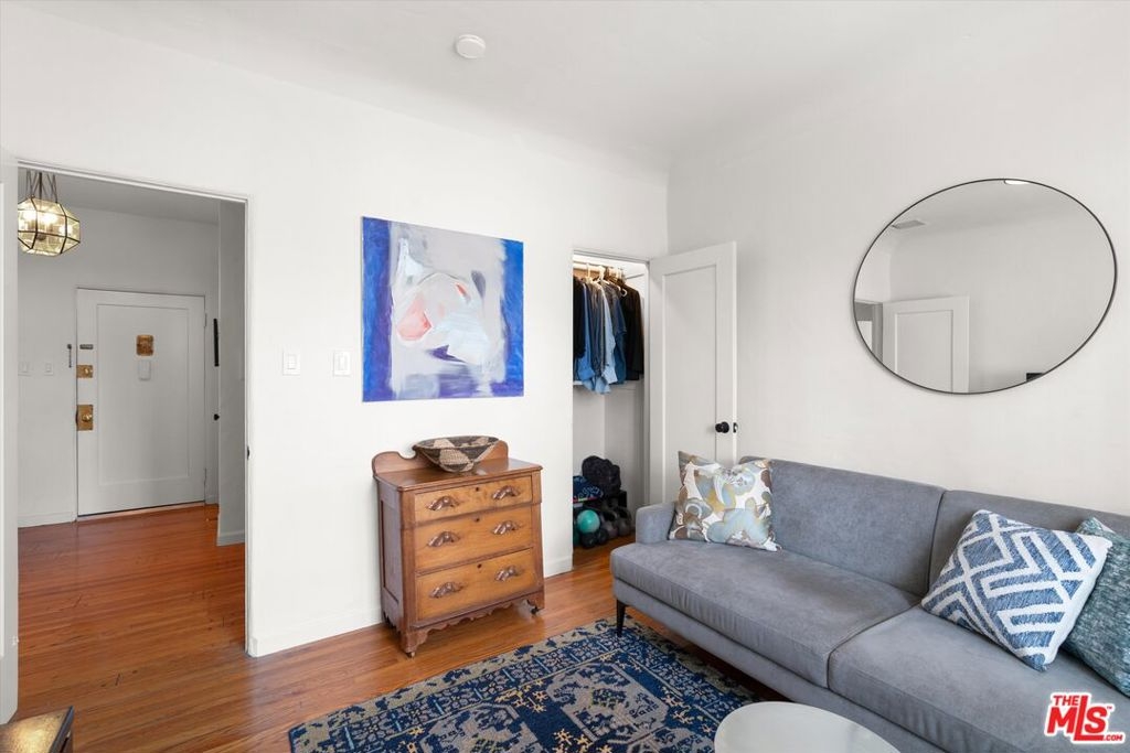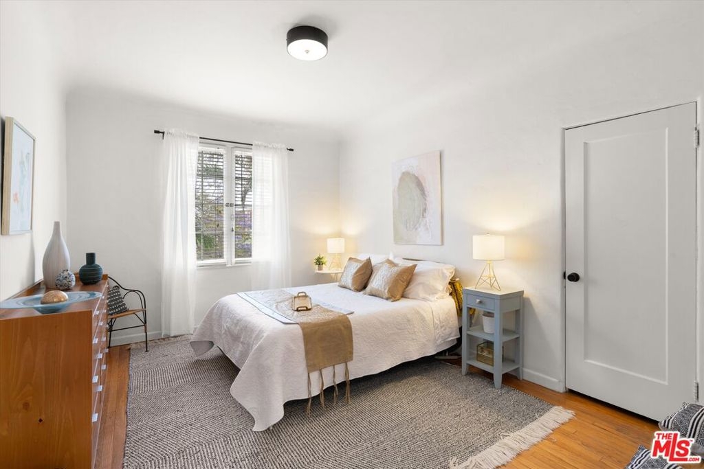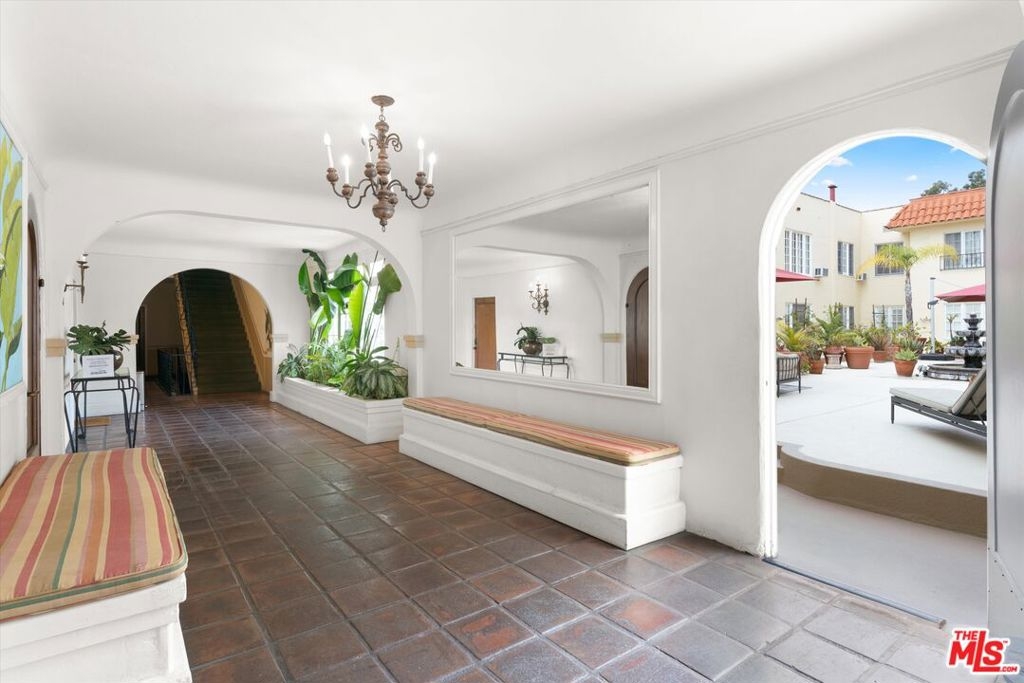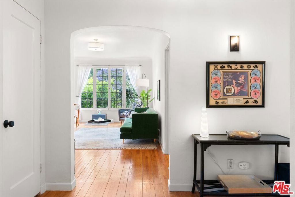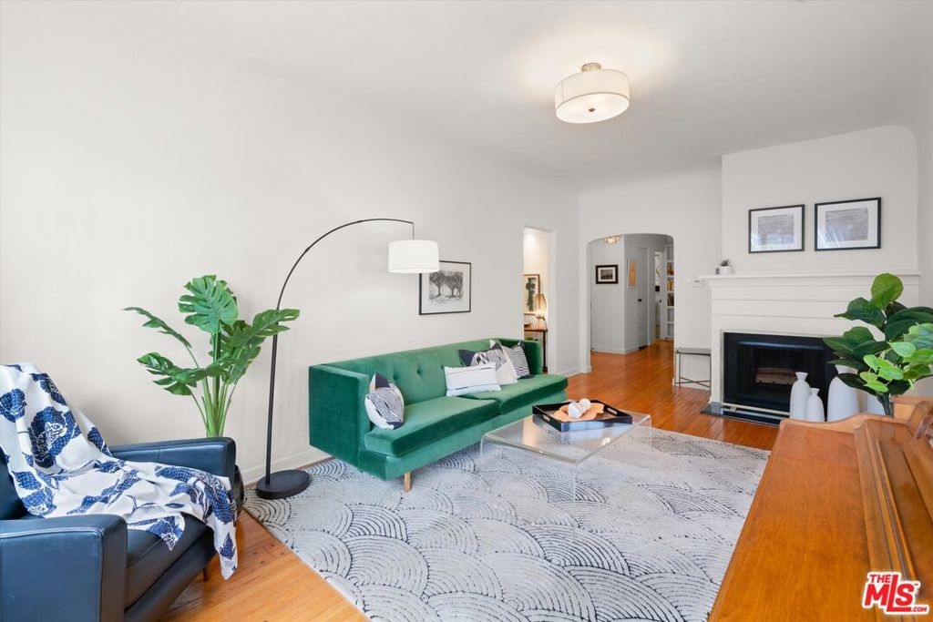 An Oasis of light greets you as you step into this top floor, corner unit of the romantic Hayworth Gardens, just south of Sunset Blvd. The natural sun pouring in from the front facing windows dances across the hardwood floors connoting a warmth and character not found in modern West Hollywood builds. Feeling much larger than the square footage suggests, the dining area between the kitchen and living room easily seats 6-8 guests and is illuminated by its own oversized window. The recently remodeled kitchen offers ample counter & cabinet space as well as newer, modern appliances, including a gas range. The large primary suite also has a front facing window and easily accommodates a king size bed with plenty of room left over for two dressers and nightstands. Separating the primary suite from the guest room is an open foyer & greeting area featuring four individual closets to fulfill your storage needs. The guest bedroom is ideal as an office, yoga, or media space and is in very close proximity to the guest bathroom. A well maintained central air conditioner and a wood burning fireplace assures comfort and warmth all year around. Hayworth Gardens is a pet friendly, historic 1920's Spanish/Mediterranean that welcomes guests into a nicely appointed lobby with direct access to a sizable central courtyard and picnic area with a flowing water feature and lovely outdoor furniture. Experience what Redfin classifies as a 'Walker's Paradise' with quick access to Trader Joe's, Bristol Farms, Starbucks, and many other fitness, shopping, dining, and entertainment establishments.
