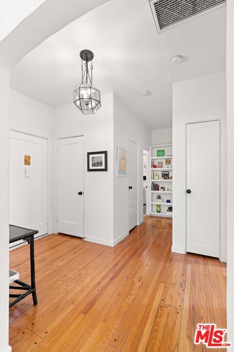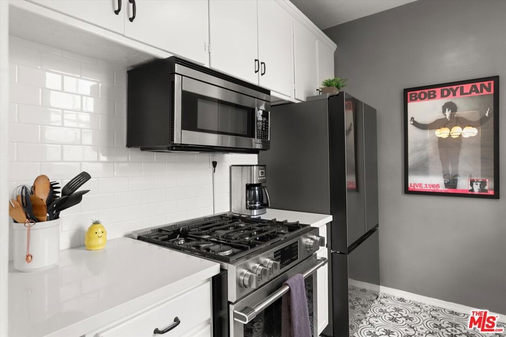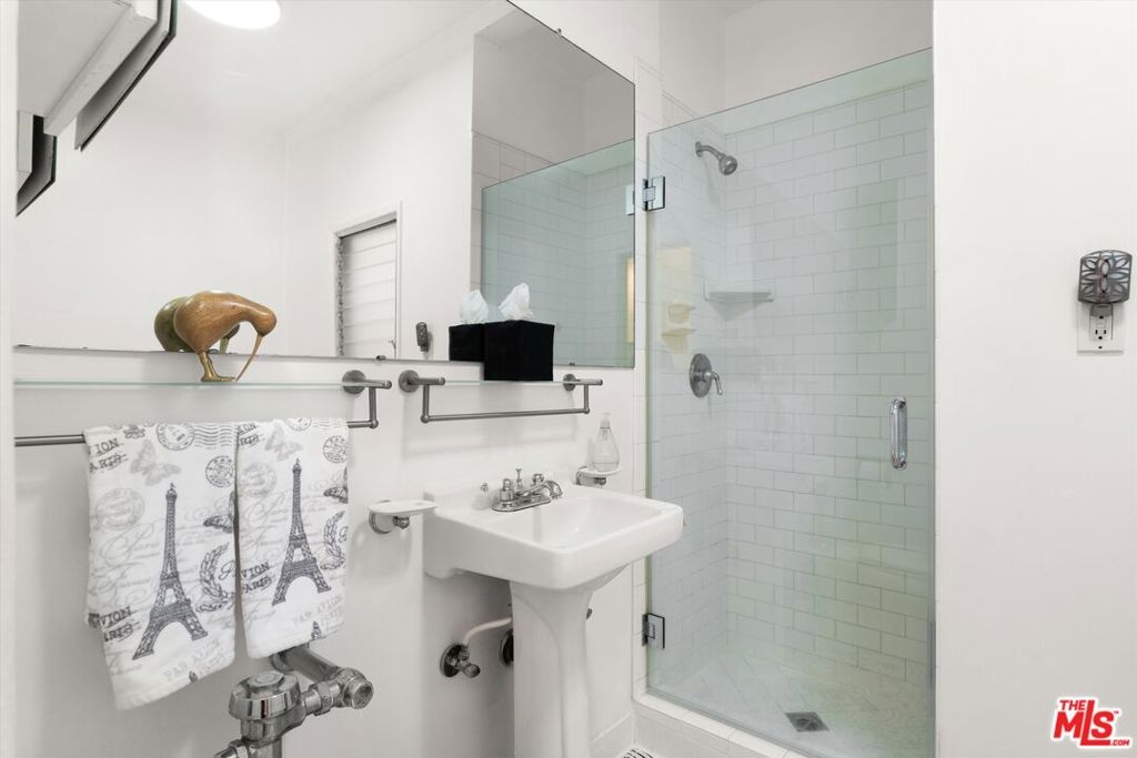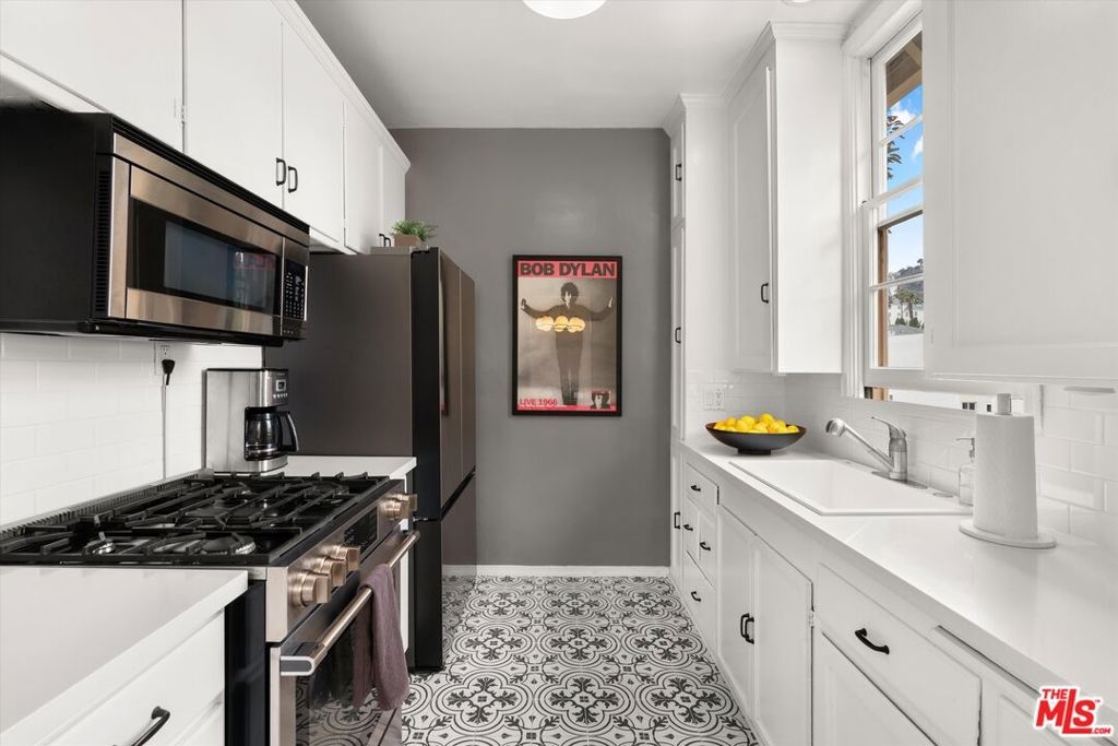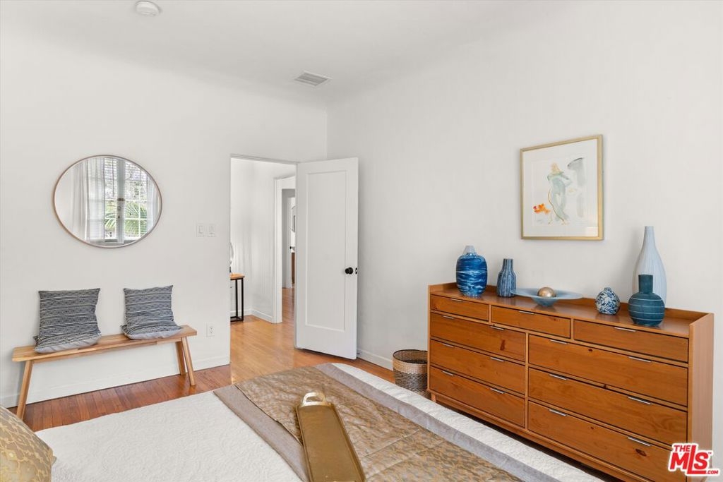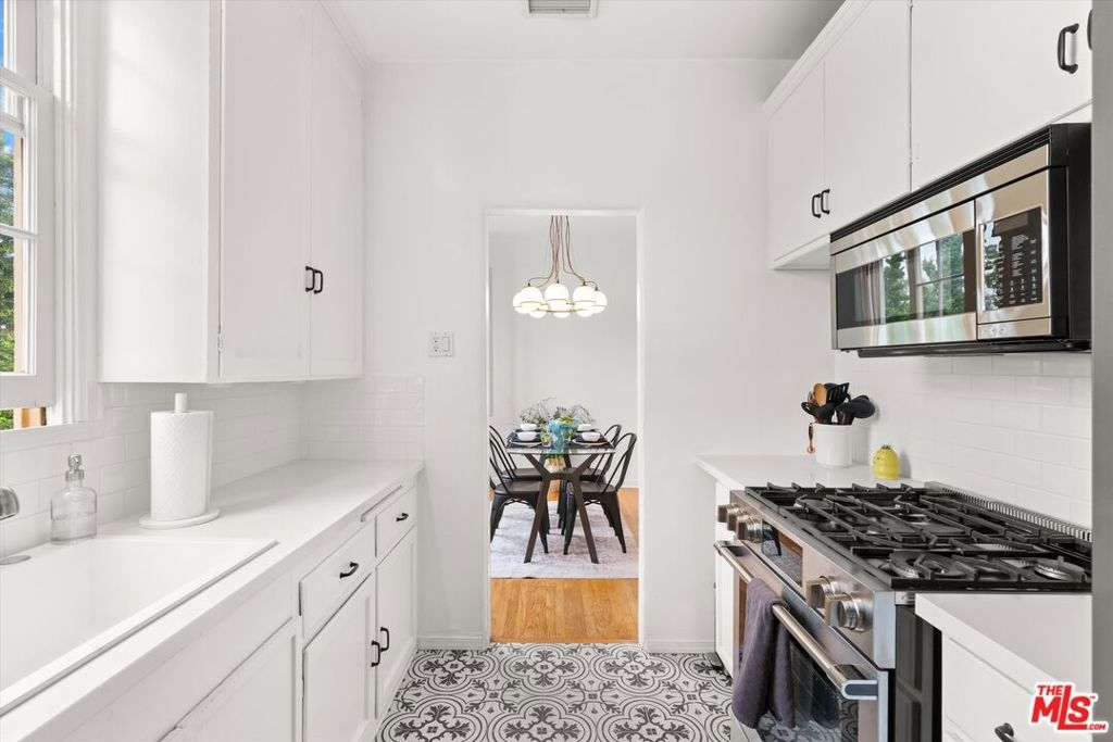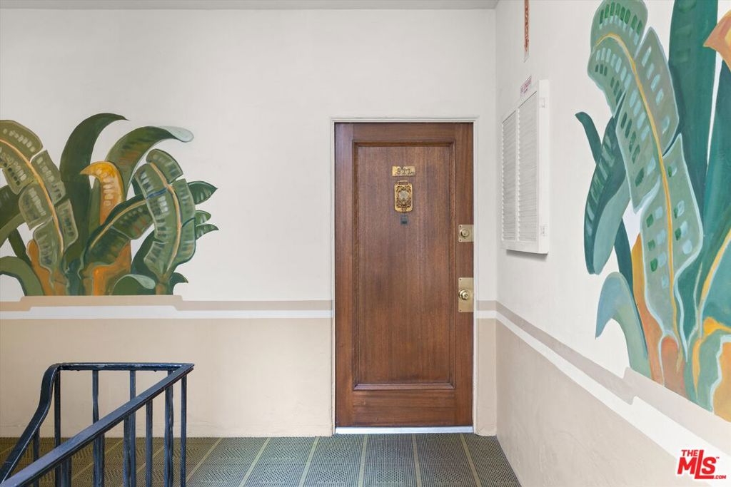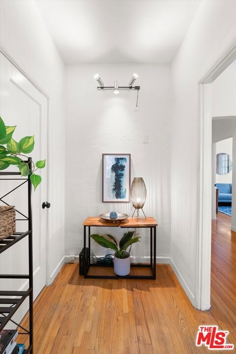 An Oasis of light greets you as you step into this top floor, corner unit of the romantic Hayworth Gardens, just south of Sunset Blvd. The natural sun pouring in from the front facing windows dances across the hardwood floors connoting a warmth and character not found in modern West Hollywood builds. Feeling much larger than the square footage suggests, the dining area between the kitchen and living room easily seats 6-8 guests and is illuminated by its own oversized window. The recently remodeled kitchen offers ample counter & cabinet space as well as newer, modern appliances, including a gas range. The large primary suite also has a front facing window and easily accommodates a king size bed with plenty of room left over for two dressers and nightstands. Separating the primary suite from the guest room is an open foyer & greeting area featuring four individual closets to fulfill your storage needs. The guest bedroom is ideal as an office, yoga, or media space and is in very close proximity to the guest bathroom. A well maintained central air conditioner and a wood burning fireplace assures comfort and warmth all year around. Hayworth Gardens is a pet friendly, historic 1920's Spanish/Mediterranean that welcomes guests into a nicely appointed lobby with direct access to a sizable central courtyard and picnic area with a flowing water feature and lovely outdoor furniture. Experience what Redfin classifies as a 'Walker's Paradise' with quick access to Trader Joe's, Bristol Farms, Starbucks, and many other fitness, shopping, dining, and entertainment establishments.