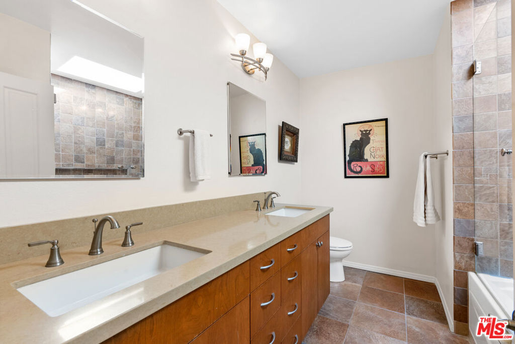Beautiful townhome in the heart of West Hollywood. First floor consists of the kitchen, dining area and living room with fireplace. There is a guest bathroom on the first floor. French doors from the living room open out to a large patio ( largest in the complex per sellers). Upstairs there is an en-suite master bedroom with fireplace , a guest bedroom with the second bathroom in the hallway. There is a laundry closet with a stackable washer and dryer. The unit is at the rear of the complex and not on Hilldale itself. Two side by side parking spaces as well.