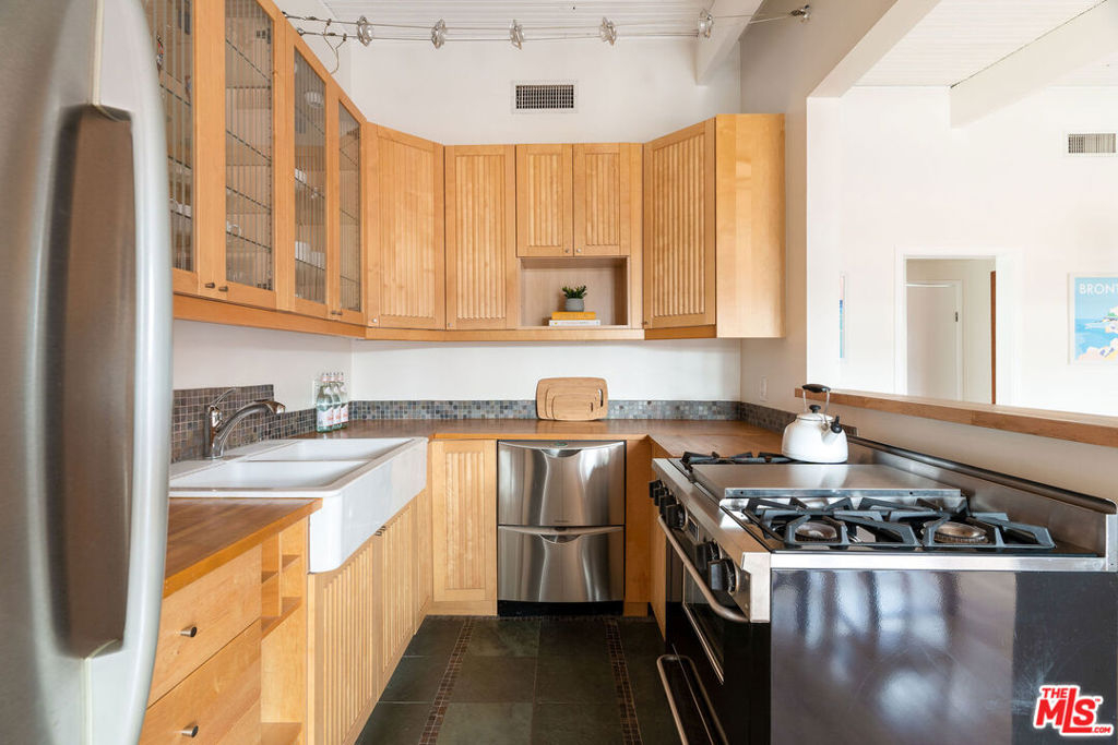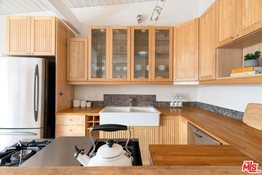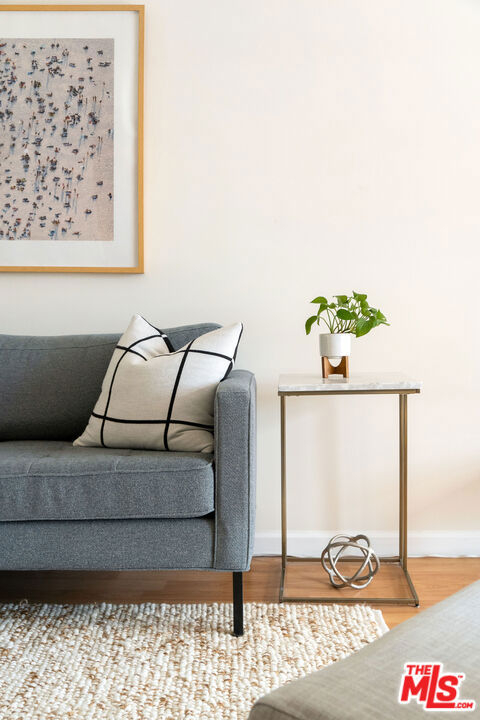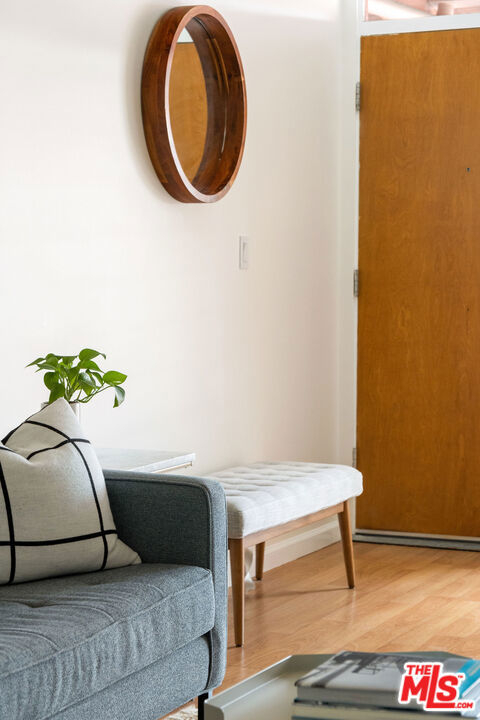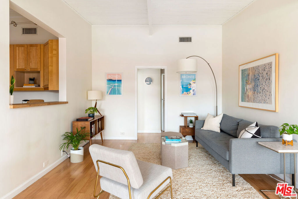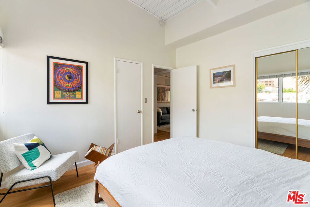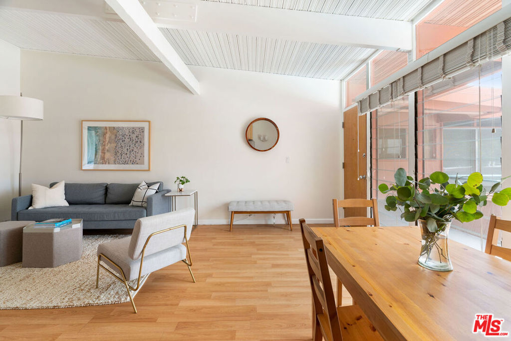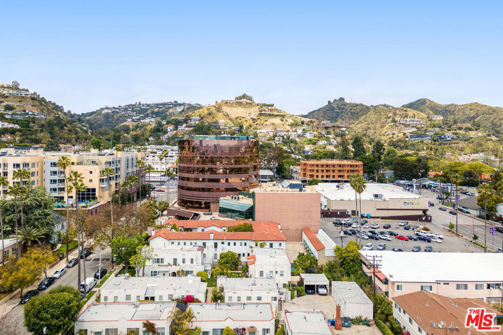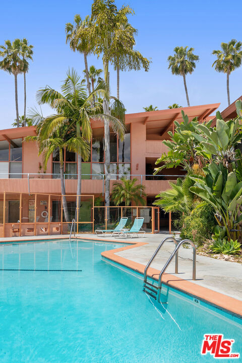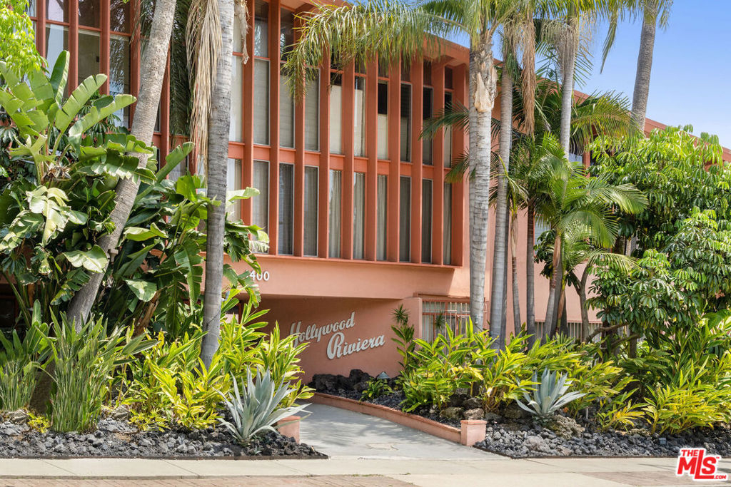 Top floor unit situated in the beloved "Hollywood Riviera," a historically designated, Mills Act approved, mid-century, post & beam masterpiece designed by famed architect Edward Fickett (FAIA). Built in 1954 and starring in numerous films, shows and commercials over the decades. Enjoy an open concept layout perfect for entertaining, and one of the many benefits of being up on the top floor: vaulted ceilings! Clerestory windows and walls of glass bathe the space in tons of natural light and overlook the courtyard pool. Views of the Hollywood Hills from the bedroom, also featuring high ceilings. Unit features central heat and air conditioning. Controlled access entry and secured subterranean gated parking garage for easy off-street parking. Enjoy the serene Palm Springs vacation vibes that accompany life at this iconic pink oasis nestled amongst the palm trees, while being just half a block from all the action on the Sunset Strip and the beloved restaurants, shops and nearby gym + markets. Welcome home!