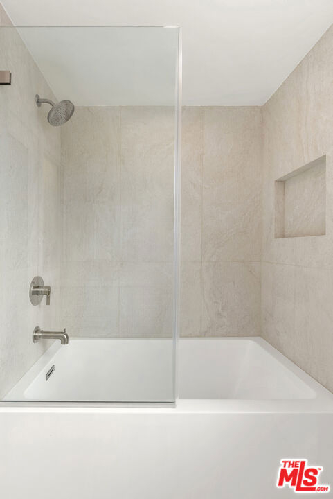 The iconic Hollywood Riviera is a celebrated West Hollywood landmark, designed in 1954 and embodying the quintessential mid-century Los Angeles aesthetic. Featured in publications such as Dwell and Architect Magazine, the building holds a coveted Mills Act historic designation, offering substantial property tax savings for its next owner. A recently completed renovation included earthquake retrofitting and a meticulous restoration of the common areas, returning the property to its original splendor. Residents now enjoy a resort-style pool with an expansive deck framed by lush tropical landscaping. This south-facing, upper-level residence showcases dramatic architectural elements, including vaulted ceilings, exposed beams, and floor-to-ceiling windows that bathe the interiors in natural light. Thoughtfully updated, the home blends authentic character with refined modern finishes. The kitchen is appointed with all-new custom cabinetry and appliances, Taj Mahal quartzite countertops, and clerestory windows. A renovated bathroom features a soaking tub, contemporary vanity, illuminated medicine cabinet, and upgraded plumbing. Additional highlights include a newer HVAC system, generous in-unit storage, and a private balcony spanning the length of the residence. Secure, automated gated entry provides two covered parking space, a rare amenity in the neighborhood, along with additional garage storage. The building also offers on-site laundry, controlled access, and earthquake insurance. Steeped in Hollywood history and often seen in film, television, and commercial productions, the Riviera remains one of West Hollywood's most enduring architectural treasures. Perfectly situated moments from the Sunset Strip's world-class dining, shopping, and nightlife, this residence offers the ultimate expression of California living.