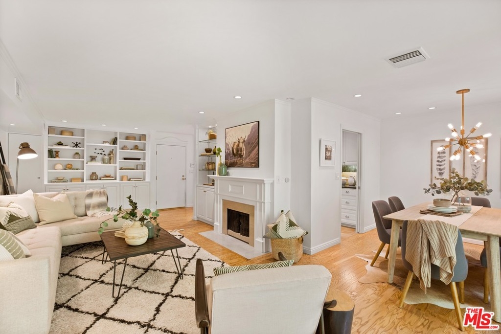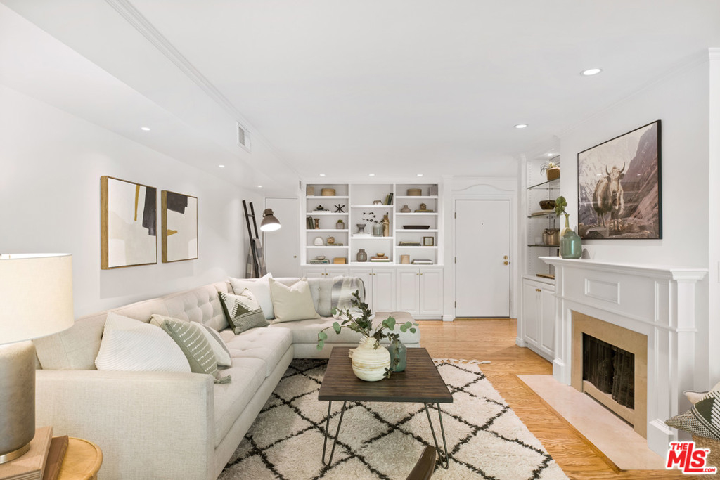 Perfectly positioned atop the hillside residential cul de sac seconds from the famous Sunset Strip offerings. Convenient from two tandem parking spots, this rear facing corner unit with lush views of the hillside provides privacy and spacious open floor plan. Newly refinished hardwood floors greet you into the oversized living room with gas fireplace, custom cabinetry bookshelves and easy transitions to dining and balcony with updated windows and sliding doors. Double pocket doors close off or invite you into the cooks kitchen with upgraded cabinetry, granite counters and backsplash, stainless steel appliances and paneled dishwasher. Oversized hallway includes built-in desk with southern views made for working from home. French doors open to spa like bathroom with tile surround, jetted tub, and hidden in-unit stackable laundry. Brand new carpet lines the comfortable bedroom with plantation shutters and large walk-in closet. Full amenities include Earthquake Insurance, cable TV, guest parking, on-site management, updated lobby, hallways, pool, spa, saunas, clubroom, sundeck, and multiple dog runs.