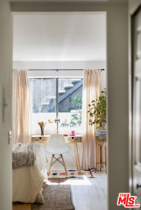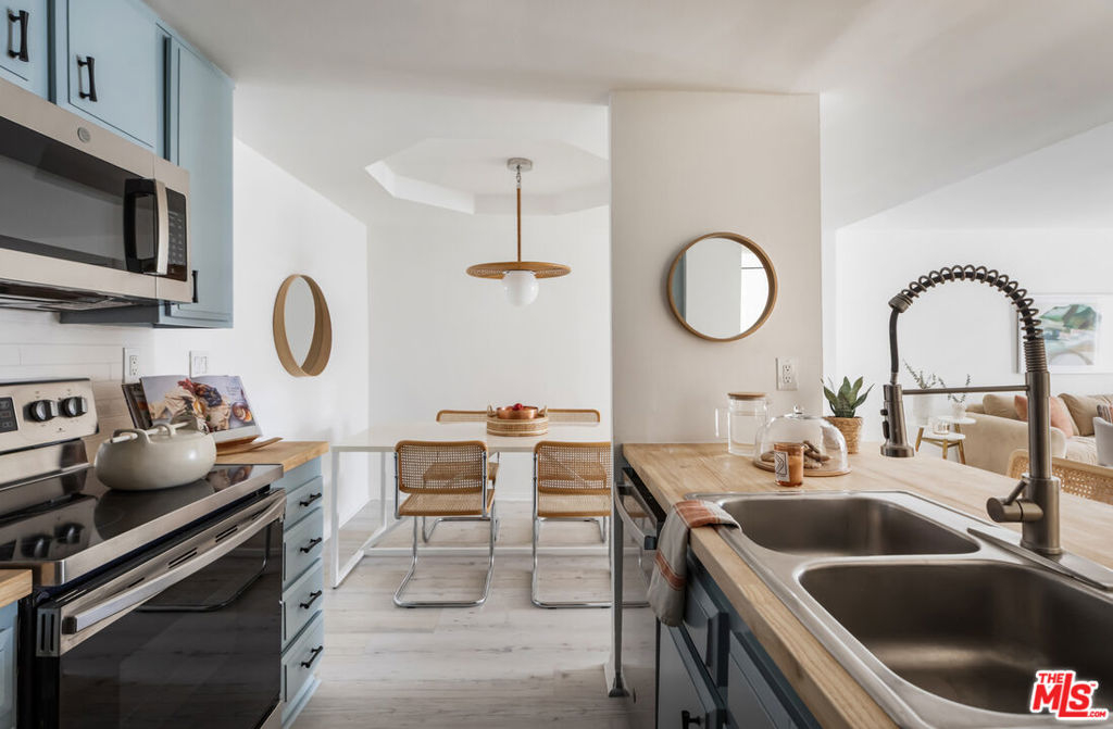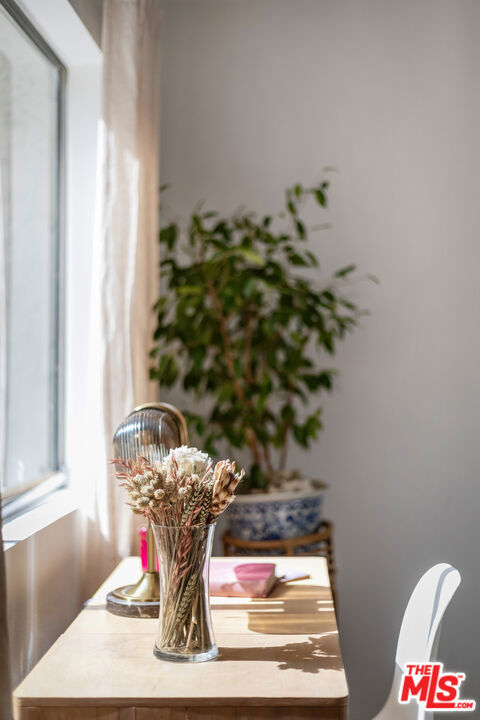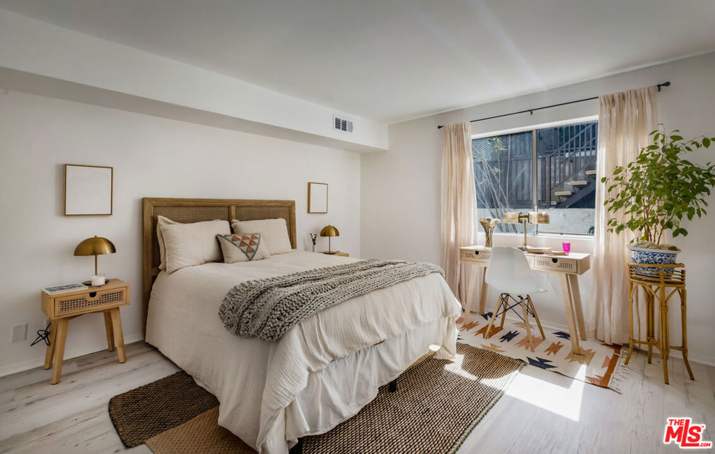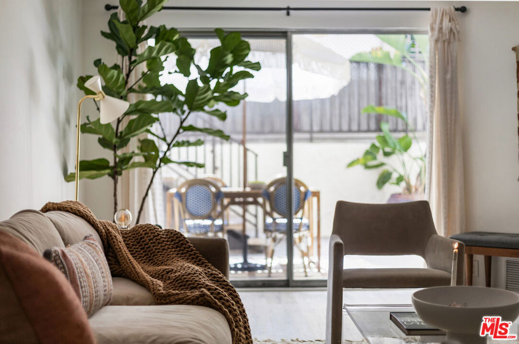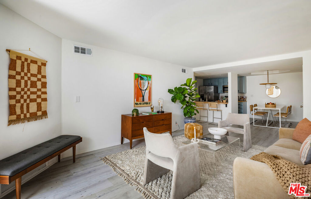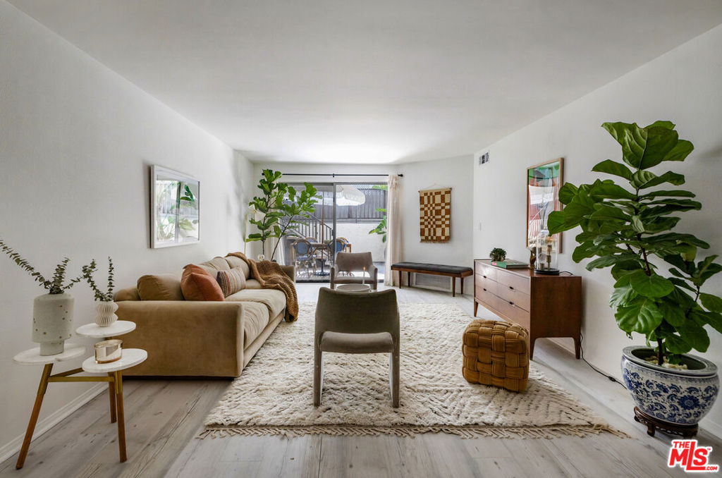 Welcom tto this bespoke unit in Sunset Plaza/West Hollywood. You will be on vacation every day with these resort amenities. Everything about this sun filled 1 bedroom, 1 bath unit in the complex is stellar, including the fact that your parking space is right next to the unit which you can get to with a few steps or an elevator allowing amazing access that is rare. You have arrived. As you enter the unit, you step into paradise. This rare find includes a spacious dining room with raised ceilings. The stunning kitchen includes updated stainless-steel appliances (microwave, dishwasher, range and fridge). White Oak wood countertops flank the kitchen with a breakfast bar that works as a great pass through to entertain your guests as they enjoy the living and dining rooms that seamlessly open up to an intimate private patio. Through the bedroom, you fill find an abundance of storage including a walk-in closet. The bathroom includes updated vanity and separate shower and tub. Other features include recessed lighting and central HVAC. Did we forget to mention? Yes, we did, space for a full-sized side by side washer/dryer. You could not ask for more with this superb location. Steps to the historic Sunset Strip with ample parking for your guests. Our favorite note is the Supreme store at the corner where the drops might take you in for a quick snap from top designers. Not your vibe? Then you have the brilliant Dialog Cafe to enjoy your morning coffee. Stroll down to Book Soup where famous authors speak and cozy up to the offerings there. Nightlife is plentiful with the likes of the Whiskey & Roxy. Put on your platforms and head down to Santa Monica Blvd/WEHO with its vibrant nightlife scene including The Abbey and dance the night away. There is something for everyone living at Horn Plaza. Horn Plaza's resort-style amenities include a hillside pool and rooftop sun deck, spa, sauna, club room, rooftop deck, dog run, and abundant guest parking. The secure building offers controlled entry, security cameras, a secured mailroom, and an onsite manager for added peace of mind. Don't miss this chance to own in one of West Hollywood's most coveted buildings! From garage there are no steps when using the elevator. HOA includes WIFI and Internet.